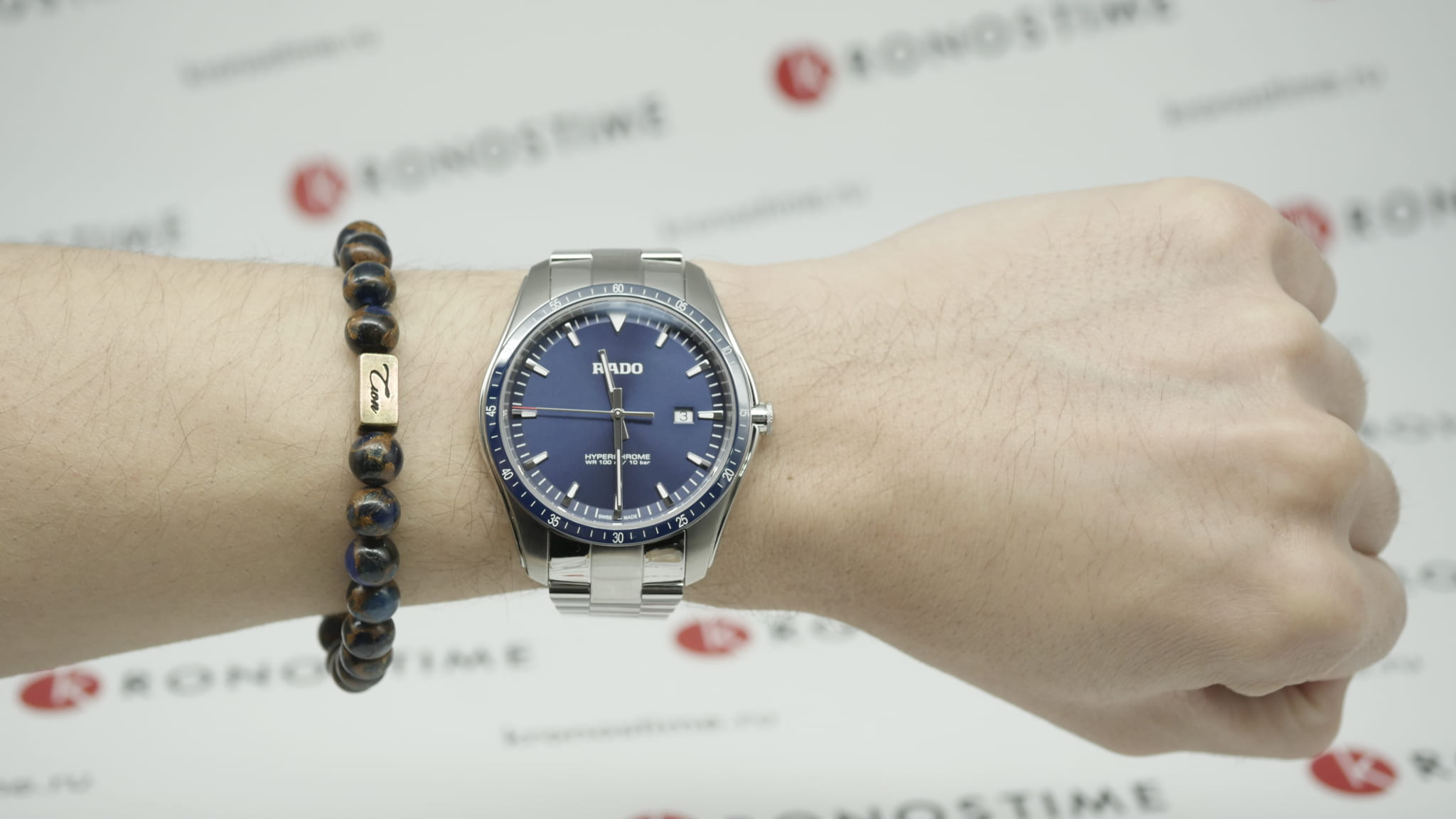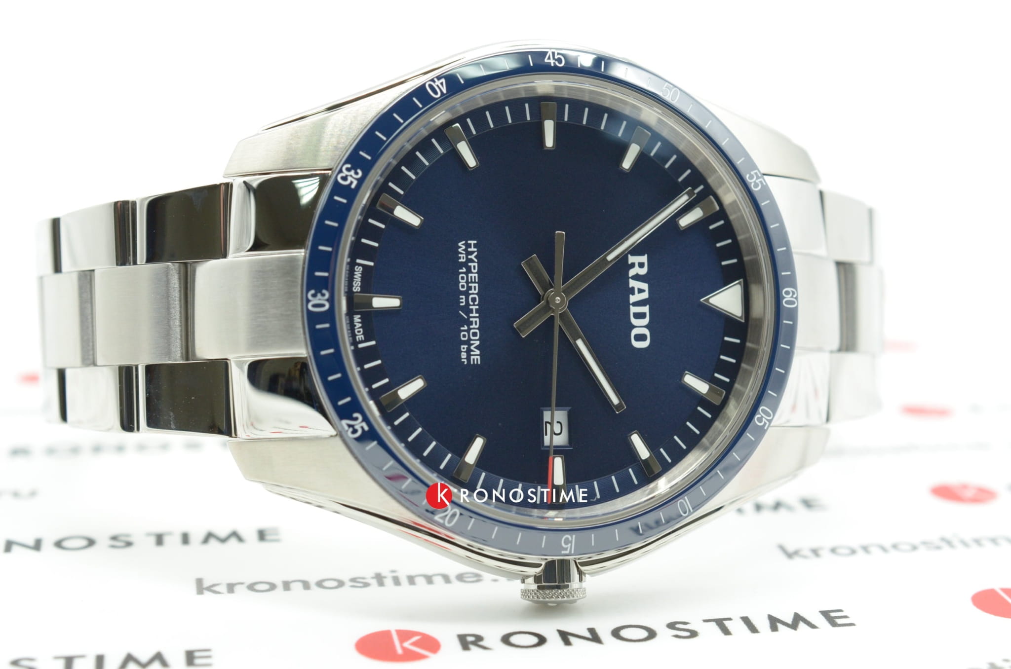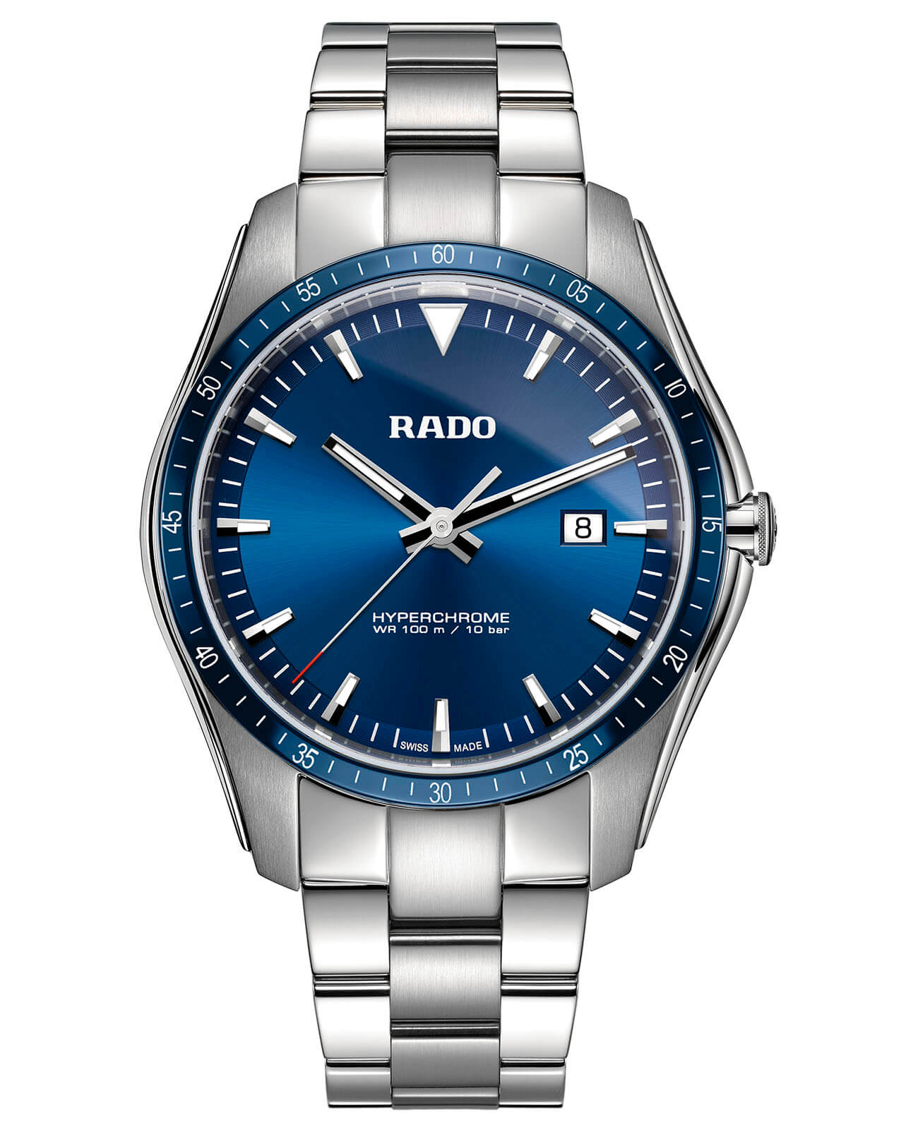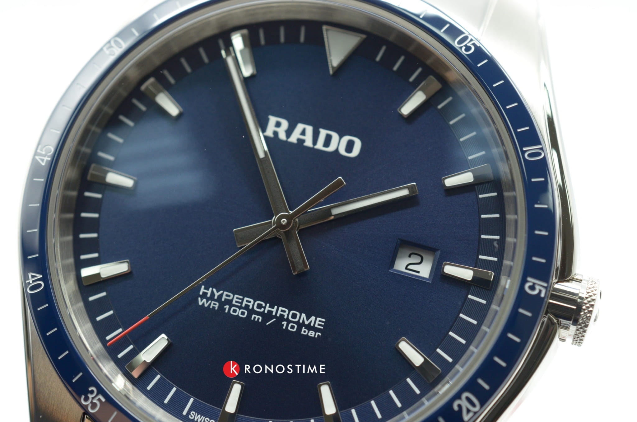 Швейцарские кварцевые часы Rado Hyperchrome R32502203. Сапфировое стеклоСапфировое стеклоПрочный и надёжный материал из кристалла сапфира синтетического происхождения, характеризующийся особой твёрдостью и устойчивостью к царапинам и повреждениям. устойчивое к мелким механическим повреждениям. Корпус изготовлен из нержавеющей стали. БезельБезельВнешний ободок, закрепляющий стекло. В спортивных часах так называется поворотное кольцо с делениями на циферблате, выполняет роль таймера – замеряет отрезки времени на шкале. Неподвижный безель – элемент декора. Однонаправленно вращающийся безель на дайверских часах позволяет фиксировать моменты погружения и выныривания на поверхность. из высокотехнологичной керамикиВысокотехнологичная керамикаИнновационный запатентованный Rado материал с гладкой или матовой поверхностью. Керамика за счёт кристаллической структуры обладает повышенной устойчивостью от возникновения царапин. Материал способен принимать температуру тела человека, обеспечивая невероятный комфорт при ношении.. Стрелки с люминесцентным покрытиемЛюминесцентное покрытиеПозволяет считывать показания времени в темноте. Производители наносят на стрелки, часовые индексы, безель или поверхность циферблата светонакопительный состав, дающий холодное свечение.. Класс водозащиты: 100 метров, позволит плавать, нырять и заниматься другими водными видами спорта. Браслет из стали на раскладной застёжкеРаскладная застёжкаТакой тип застёжки используется только на браслетах из металла. Она никогда не раскрывается полностью, происходит разделение на 2 и более частей. Раскладывающая застёжка снизит вероятность потери часов к минимуму..