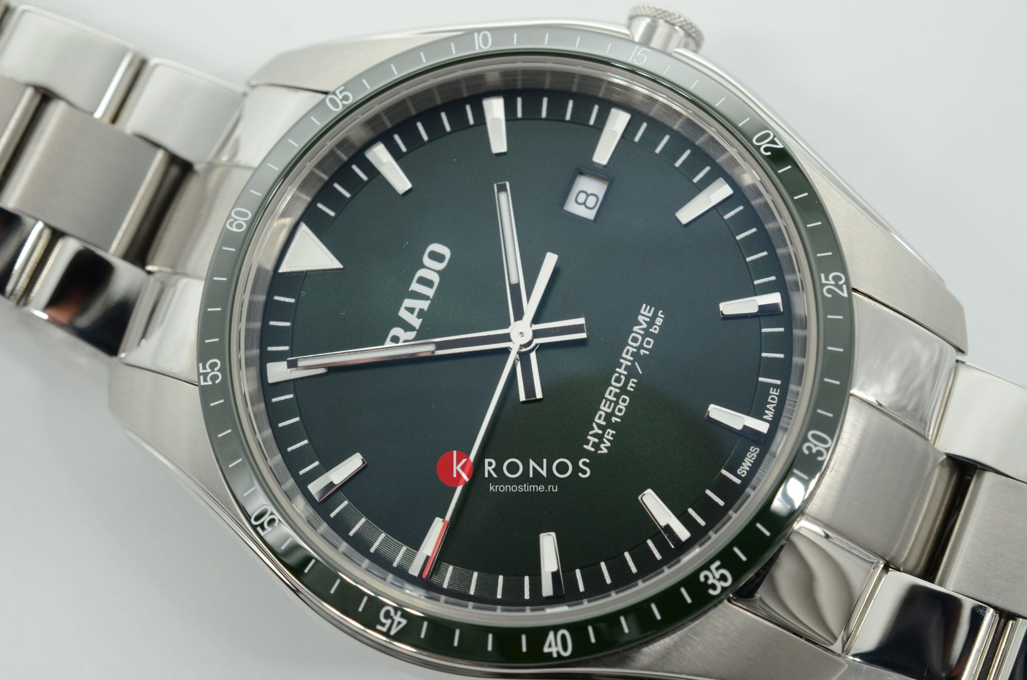 Швейцарские кварцевые часы Rado Hyperchrome R32502313. Сапфировое стеклоСапфировое стеклоПрочный и надёжный материал из кристалла сапфира синтетического происхождения, характеризующийся особой твёрдостью и устойчивостью к царапинам и повреждениям. устойчивое к мелким механическим повреждениям. Корпус изготовлен из нержавеющей стали. БезельБезельВнешний ободок, закрепляющий стекло. В спортивных часах так называется поворотное кольцо с делениями на циферблате, выполняет роль таймера – замеряет отрезки времени на шкале. Неподвижный безель – элемент декора. Однонаправленно вращающийся безель на дайверских часах позволяет фиксировать моменты погружения и выныривания на поверхность. из высокотехнологичной керамикиВысокотехнологичная керамикаИнновационный запатентованный Rado материал с гладкой или матовой поверхностью. Керамика за счёт кристаллической структуры обладает повышенной устойчивостью от возникновения царапин. Материал способен принимать температуру тела человека, обеспечивая невероятный комфорт при ношении.. Стрелки с люминесцентным покрытиемЛюминесцентное покрытиеПозволяет считывать показания времени в темноте. Производители наносят на стрелки, часовые индексы, безель или поверхность циферблата светонакопительный состав, дающий холодное свечение.. Класс водозащиты: 100 метров, позволит плавать, нырять и заниматься другими водными видами спорта. Браслет из стали на раскладной застёжкеРаскладная застёжкаТакой тип застёжки используется только на браслетах из металла. Она никогда не раскрывается полностью, происходит разделение на 2 и более частей. Раскладывающая застёжка снизит вероятность потери часов к минимуму..