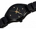 Компактная модель отличается изящным силуэтом и удачно гармонирует с любым стилем одежды, шика добавляют 4 бриллианта в 0,032 карат. Контрастные стрелки и метки золотистого цвета обеспечивают отличную читаемость чёрного циферблата. Наручные часы сделаны из высокотехнологичной керамикиВысокотехнологичная керамикаИнновационный запатентованный Rado материал с гладкой или матовой поверхностью. Керамика за счёт кристаллической структуры обладает повышенной устойчивостью от возникновения царапин. Материал способен принимать температуру тела человека, обеспечивая невероятный комфорт при ношении., материал долговечен, лёгок и устойчив к образованию царапин. Швейцарский кварцевый калибр ETA 956.112. Сапфировое стекло. Люминесцентная подсветкаЛюминесцентное покрытиеПозволяет считывать показания времени в темноте. Производители наносят на стрелки, часовые индексы, безель или поверхность циферблата светонакопительный состав, дающий холодное свечение.. Водонепроницаемость 5 бар. . Окошко календаря. Диаметр корпуса: 30 мм.