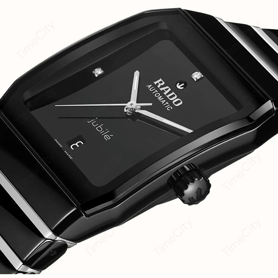 Мужские швейцарские механические часы Rado Anatom Automatic R10201712. Сапфировое стеклоСапфировое стеклоПрочный и надёжный материал из кристалла сапфира синтетического происхождения, характеризующийся особой твёрдостью и устойчивостью к царапинам и повреждениям. устойчивое к мелким механическим повреждениям. Корпус часов изготовлен из нержавеющей стали и керамики. Стрелки с люминесцентным покрытиемЛюминесцентное покрытиеПозволяет считывать показания времени в темноте. Производители наносят на стрелки, часовые индексы, безель или поверхность циферблата светонакопительный состав, дающий холодное свечение.. Венчает циферблат на отметке 12 часов культовый подвижный якорь, дополненный сдержанным окошком даты, расположенным на отметке 6 часов. Класс водозащиты: 50 метров, позволит защитить корпус от случайных брызг или капель дождя. Стальной браслет и керамика на застёжке-бабочке с кнопкамиЗастёжка "бабочка"Такой вид застёжки дополняется предохранителями, помогающими избежать случайного раскрытия браслета. Обладают изящным исполнением. . 3 бриллианта Top Wesselton полной огранки и стрелки цвета родия с белым покрытием Super-LumiNova® создают сияющий контраст на фоне глубины циферблата.