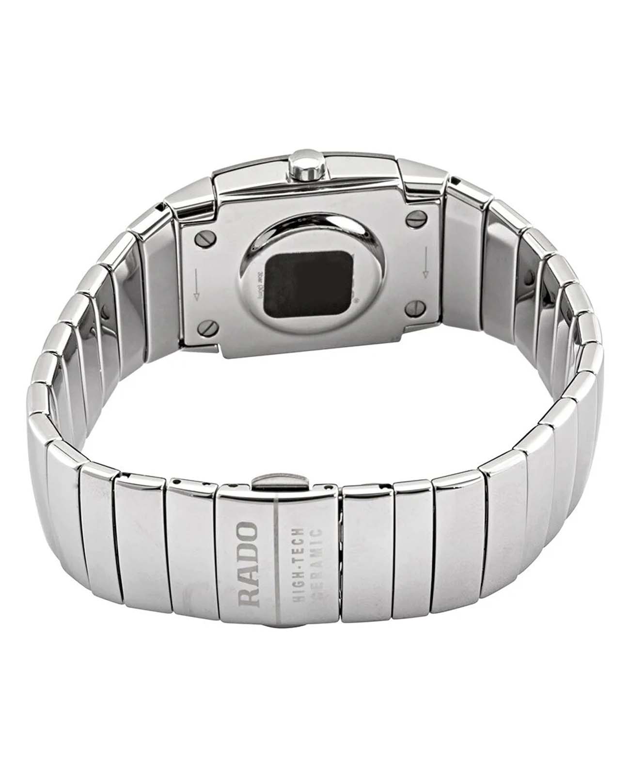Швейцарские женские механические часы с автоподзаводом Rado Sintra R13855702. Сапфировое стеклоСапфировое стеклоПрочный и надёжный материал из кристалла сапфира синтетического происхождения, характеризующийся особой твёрдостью и устойчивостью к царапинам и повреждениям. устойчивое к мелким механическим повреждениям. Корпус часов изготовлен из высокотехнологичной керамикиВысокотехнологичная плазменная керамикаИнновационный материал, технология запатентована. Выплавление керамики осуществляется в печи при 20 000 °C, белоснежный материал под воздействием ультравысокой температуры приобретает уникальный блеск, присущий металлам.. Циферблат украшен бриллиантами. Окошко даты находится в положении 6 часов. Класс водозащиты: 30 метров, позволит защитить корпус от случайных брызг или капель дождя. Браслет из высокотехнологичной керамикиВысокотехнологичная плазменная керамикаИнновационный материал, технология запатентована. Выплавление керамики осуществляется в печи при 20 000 °C, белоснежный материал под воздействием ультравысокой температуры приобретает уникальный блеск, присущий металлам. на раскладной застёжкеРаскладная застёжкаТакой тип застёжки используется только на браслетах из металла. Она никогда не раскрывается полностью, происходит разделение на 2 и более частей. Раскладывающая застёжка снизит вероятность потери часов к минимуму..