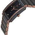 Наручные часы привлекают строгими геометрическими формами, элегантным стилем, оригинальным дизайном. Прямоугольный чёрный циферблат декорирован 4 бриллиантами в 0,032 карат, сияние драгоценных камней добавит образу роскоши. Стальной браслет дополнен вставками из высокотехнологичной керамикиВысокотехнологичная керамикаИнновационный запатентованный Rado материал с гладкой или матовой поверхностью. Керамика за счёт кристаллической структуры обладает повышенной устойчивостью от возникновения царапин. Материал способен принимать температуру тела человека, обеспечивая невероятный комфорт при ношении.. Кварцевый механизм ETA E61.111. Надёжное сапфировое стекло. . PVD-покрытиеPVDУльтратонкое покрытие наносится в технике вакуумного напыления, сочетает в себе нитрид титана особой прочности со слоем золота или оксида хрома. Несёт в себе декоративную или защитную функцию. оттенка розового золота. Апертура даты. Габариты: 31 x 41,1 x 7,6 мм.