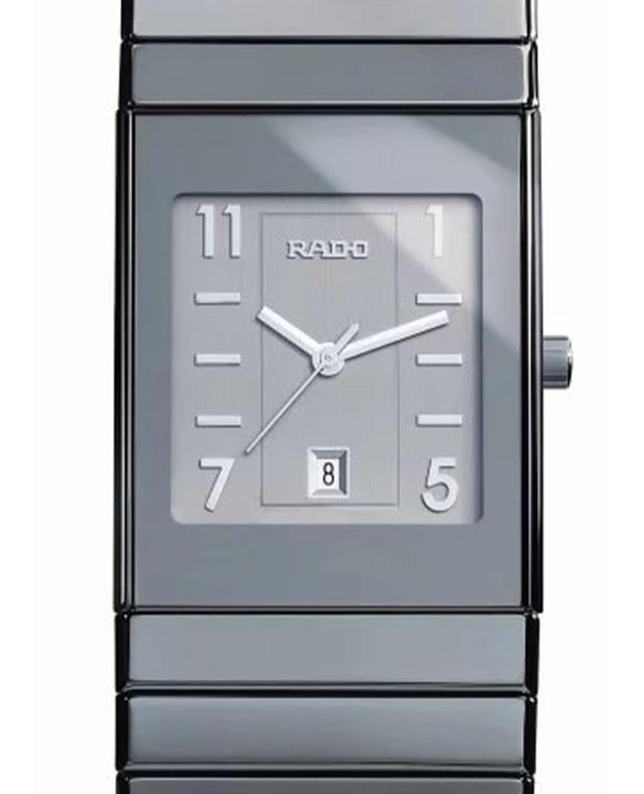 Швейцарские часы Rado Ceramica R21640122, кварцевый механизм с высокой точностью. Сапфировое стеклоСапфировое стеклоПрочный и надёжный материал из кристалла сапфира синтетического происхождения, характеризующийся особой твёрдостью и устойчивостью к царапинам и повреждениям. устойчивое к появлению царапин, обладающее высокой прозрачностью. Корпус часов изготовлен из нержавеющей стали и керамики. Класс водозащиты: 30 метров, позволит защитить корпус от случайных брызг или капель дождя. Керамический браслет на застёжке-бабочке с кнопкамиЗастёжка "бабочка"Такой вид застёжки дополняется предохранителями, помогающими избежать случайного раскрытия браслета. Обладают изящным исполнением. с раскладной застёжкойРаскладная застёжкаТакой тип застёжки используется только на браслетах из металла. Она никогда не раскрывается полностью, происходит разделение на 2 и более частей. Раскладывающая застёжка снизит вероятность потери часов к минимуму..