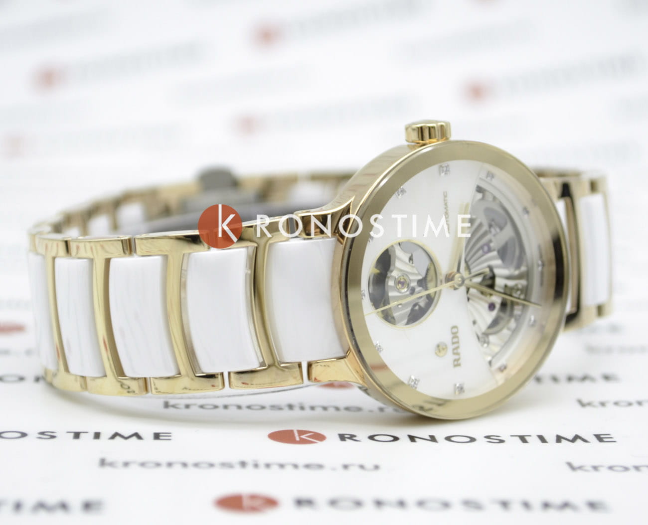 Швейцарские механические часы-скелетоны с автоподзаводом Rado Centrix Automatic Diamonds Open Heart R30248902. Сапфировое стеклоСапфировое стеклоПрочный и надёжный материал из кристалла сапфира синтетического происхождения, характеризующийся особой твёрдостью и устойчивостью к царапинам и повреждениям. устойчивое к мелким механическим повреждениям. Корпус часов изготовлен из нержавеющей стали с PVD-покрытиемPVDУльтратонкое покрытие наносится в технике вакуумного напыления, сочетает в себе нитрид титана особой прочности со слоем золота или оксида хрома. Несёт в себе декоративную или защитную функцию.. Класс водозащиты: 30 метров, позволит защитить корпус от случайных брызг или капель дождя. Браслет из стали PVD-покрытиемPVDУльтратонкое покрытие наносится в технике вакуумного напыления, сочетает в себе нитрид титана особой прочности со слоем золота или оксида хрома. Несёт в себе декоративную или защитную функцию. и высокотехнологичной керамикиВысокотехнологичная керамикаИнновационный запатентованный Rado материал с гладкой или матовой поверхностью. Керамика за счёт кристаллической структуры обладает повышенной устойчивостью от возникновения царапин. Материал способен принимать температуру тела человека, обеспечивая невероятный комфорт при ношении. на раскладной застёжкеРаскладная застёжкаТакой тип застёжки используется только на браслетах из металла. Она никогда не раскрывается полностью, происходит разделение на 2 и более частей. Раскладывающая застёжка снизит вероятность потери часов к минимуму..
