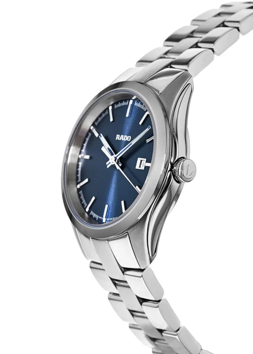 Женские швейцарские часы с надёжным кварцевым механизмом. Rado Hyperchrome R32110203. Сапфировое стеклоСапфировое стеклоПрочный и надёжный материал из кристалла сапфира синтетического происхождения, характеризующийся особой твёрдостью и устойчивостью к царапинам и повреждениям. устойчивое к мелким механическим повреждениям. Корпус и браслет часов изготовлены из нержавеющей стали. Стальной браслет на раскладной застёжкеРаскладная застёжкаТакой тип застёжки используется только на браслетах из металла. Она никогда не раскрывается полностью, происходит разделение на 2 и более частей. Раскладывающая застёжка снизит вероятность потери часов к минимуму.. Окошко даты находится в положении 3 часа. Стрелки и метки с люминесцентным покрытиемЛюминесцентное покрытиеПозволяет считывать показания времени в темноте. Производители наносят на стрелки, часовые индексы, безель или поверхность циферблата светонакопительный состав, дающий холодное свечение.. Класс водозащиты: 50 метров, позволит защитить корпус от случайных брызг или капель дождя.