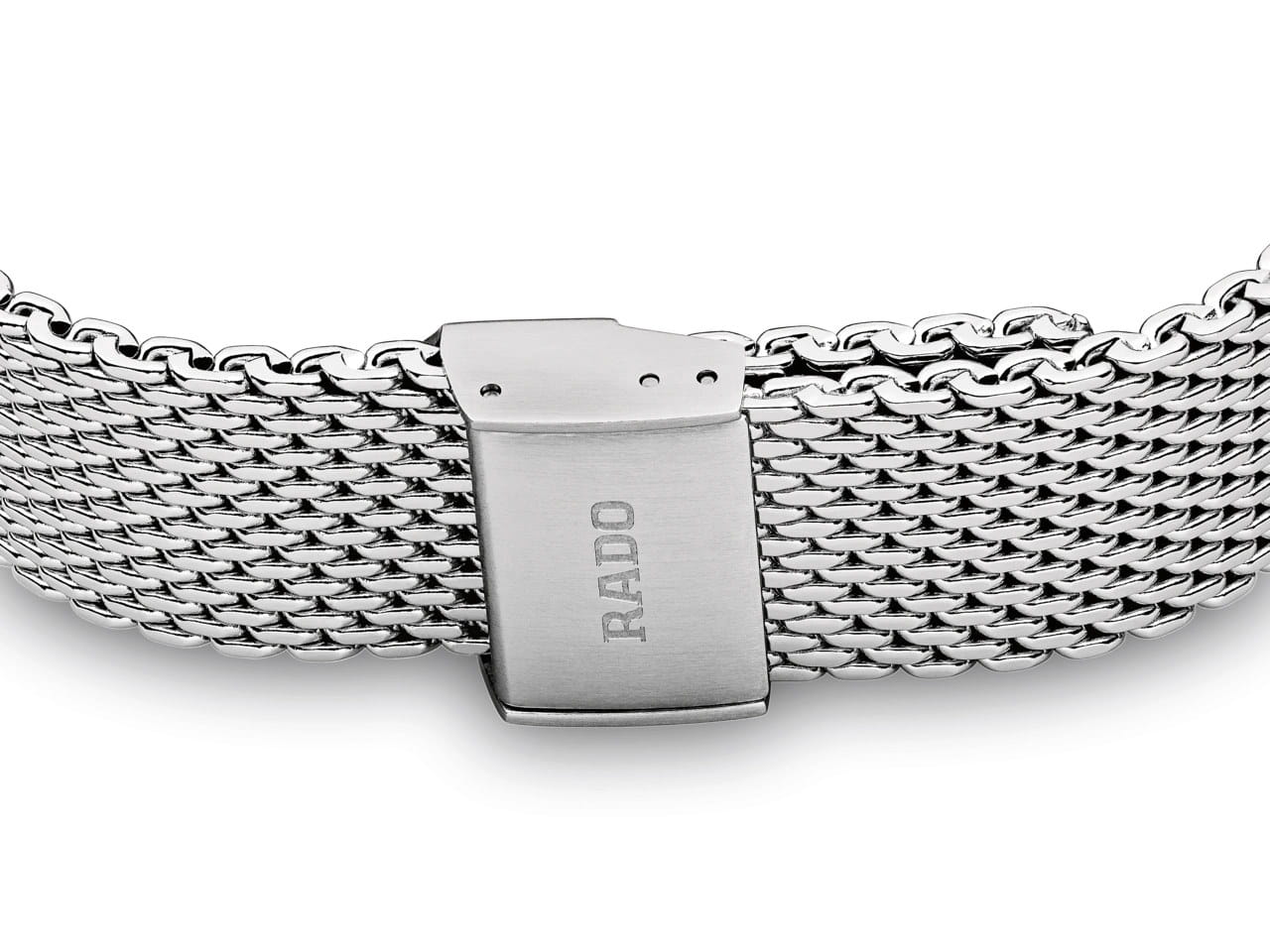 Женские швейцарские механические часы Rado Captain Cook Automatic R32500703. Сапфировое стеклоСапфировое стеклоПрочный и надёжный материал из кристалла сапфира синтетического происхождения, характеризующийся особой твёрдостью и устойчивостью к царапинам и повреждениям. устойчивое к мелким механическим повреждениям. Корпус часов изготовлен из нержавеющей стали. БезельБезельВнешний ободок, закрепляющий стекло. В спортивных часах так называется поворотное кольцо с делениями на циферблате, выполняет роль таймера – замеряет отрезки времени на шкале. Неподвижный безель – элемент декора. Однонаправленно вращающийся безель на дайверских часах позволяет фиксировать моменты погружения и выныривания на поверхность. из Высокотехнологичной керамикиВысокотехнологичная керамикаИнновационный запатентованный Rado материал с гладкой или матовой поверхностью. Керамика за счёт кристаллической структуры обладает повышенной устойчивостью от возникновения царапин. Материал способен принимать температуру тела человека, обеспечивая невероятный комфорт при ношении. и стали. Стрелки и метки с люминесцентным покрытиемЛюминесцентное покрытиеПозволяет считывать показания времени в темноте. Производители наносят на стрелки, часовые индексы, безель или поверхность циферблата светонакопительный состав, дающий холодное свечение.. Окошко даты находится в положении 3 часа. Циферблат украшен бриллинтами. Класс водозащиты: 100 метров, позволит плавать, нырять и заниматься другими водными видами спорта. Стальной браслет миланского плетения на раскладном замкеРаскладной замокДанный вариант застежки используется только на часах с металлическим браслетом. Отличительная особенность такого крепления в том, что длина браслета становится универсальной и вы можете самостоятельно отрегулировать нужный вам размер – застежка просто двигается по браслету часов..