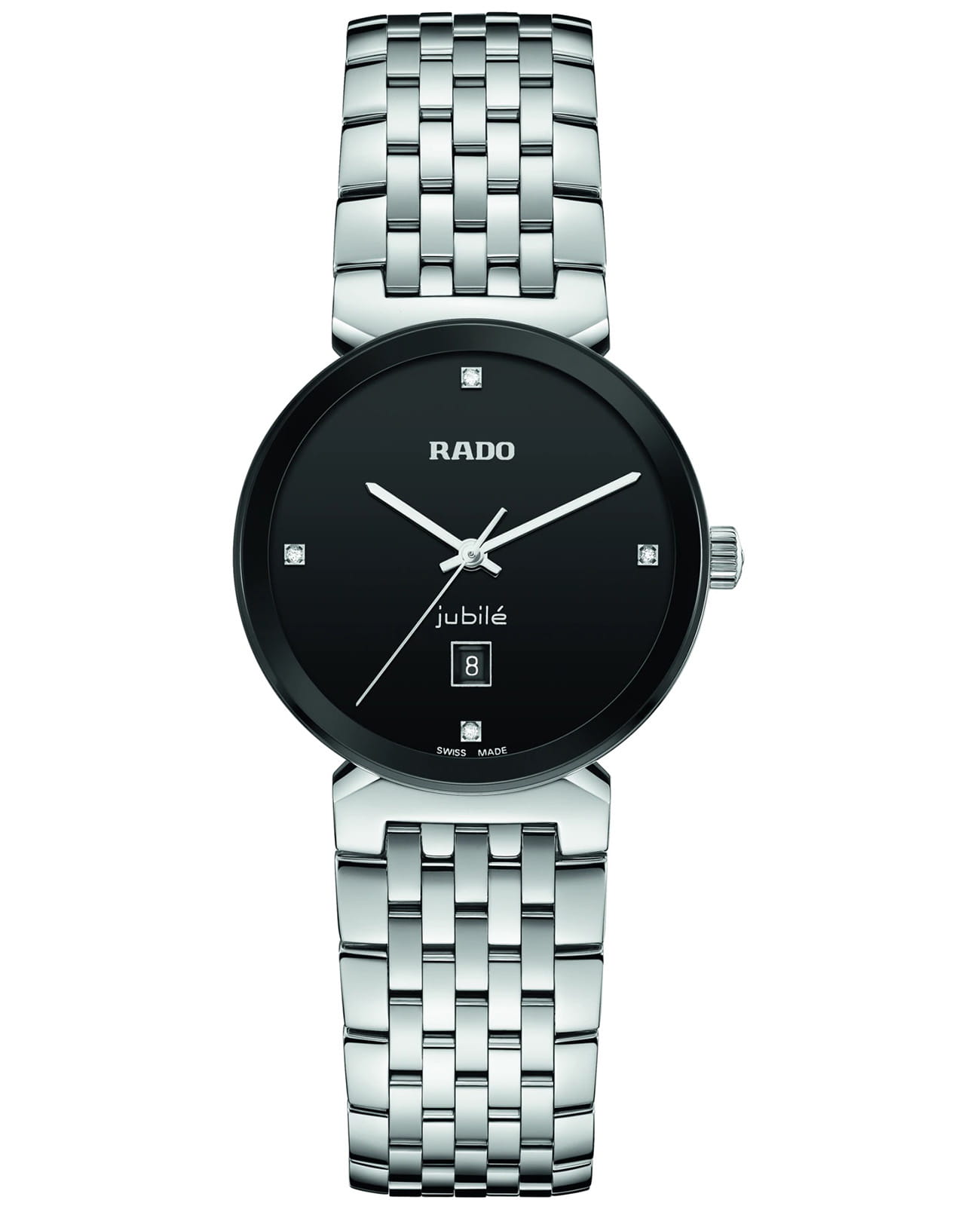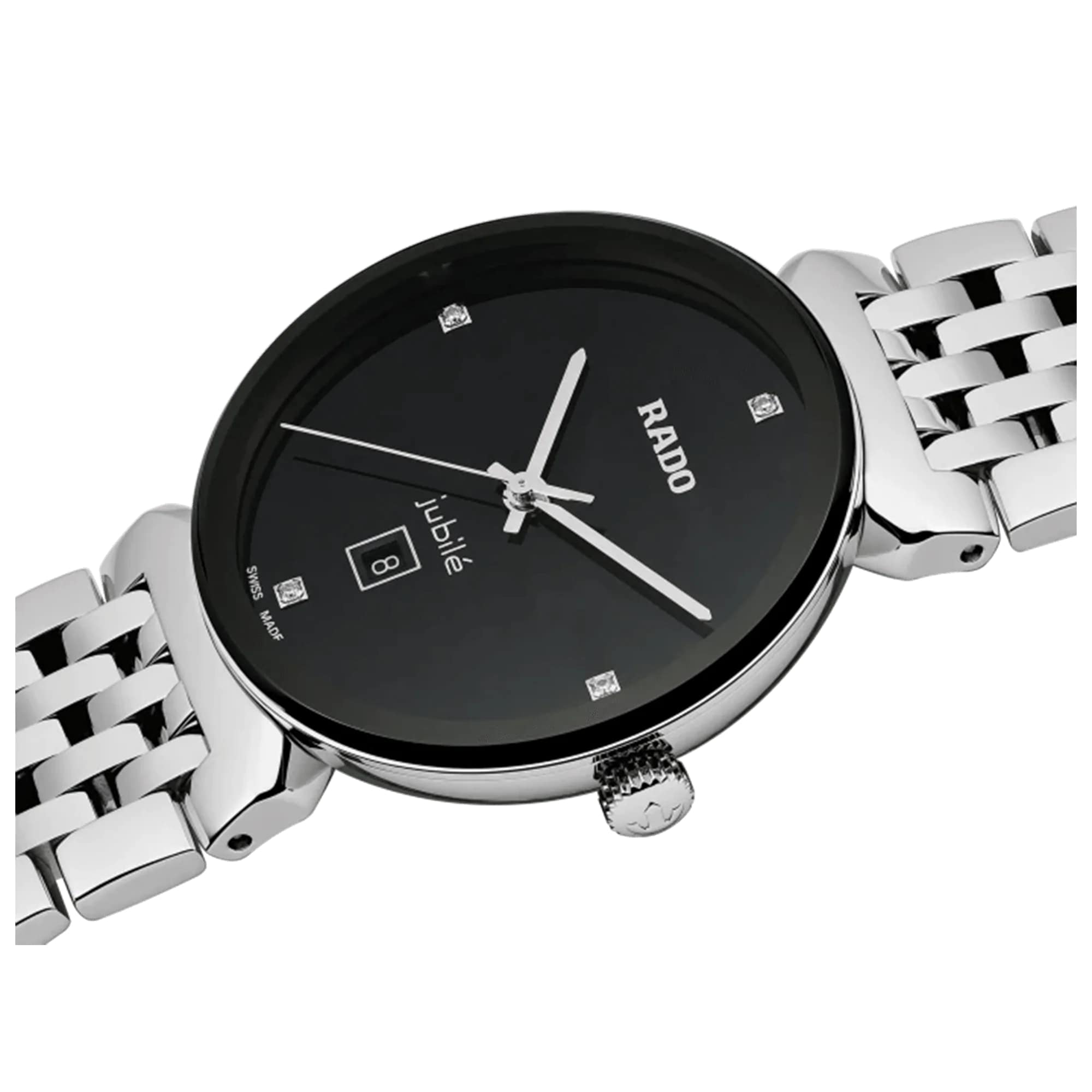 Гармоничный дизайн Rado Florence напоминает об элегантных силуэтах куполов и башенок города, чье название взято за основу названия этих часов. Благодаря качественному кварцевому часовому механизму и инновационному, полностью металлизированному сапфировому стеклу и неблекнущему сиянию бриллиантов, эти швейцарские часы с легкостью пройдут испытание временем. Стрелки с родиевым покрытием скользят по циферблату с бриллиантовыми делениями на 3, 6, 9 и 12 часов. Их сверкающее присутствие в новой коллекции Florence Classic подчеркивается возвращением логотипа Jubilé.