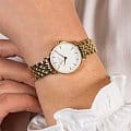 Они стильные подойдут и к джинсам с блузкой и к платью. Часики исправные, батарейка внутри.  Круглый корпус выполнен из нержавеющей стали с PVD покрытием цвета желтого золота. Прочное минеральное стекло.  Диаметр корпуса составляет 26 мм