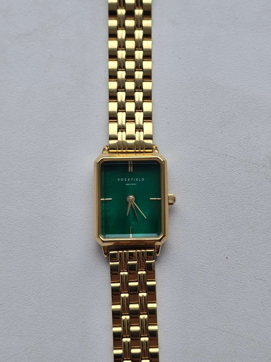 Женские кварцевые часы Rosefield The Octagon OEGSG-O79. Корпус часов изготовлен из нержавеющей стали с PVD-покрытиемPVDУльтратонкое покрытие наносится в технике вакуумного напыления, сочетает в себе нитрид титана особой прочности со слоем золота или оксида хрома. Несёт в себе декоративную или защитную функцию.. Стальной браслет на ювелирной застёжке. Минеральное стеклоМинеральное стеклоМинеральное стекло представляет собой искусственно выращенный минерал кварца. Такое стекло отличается особой устойчивостью к повреждениям и царапинам. Уступает по некоторым качествам сапфировому стеклу. устойчивое к мелким механическим повреждениям. Класс водозащиты: 30 метров, позволит защитить корпус от случайных брызг или капель дождя.