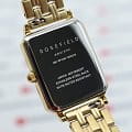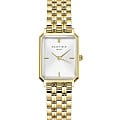 Женские кварцевые часы. Центральные часовая, минутная и секундная стрелки. Серебристый циферблат. Восьмиугольный корпус выполнен из металла с IP покрытием цвета желтого золота. Размер корпуса составляет 19,5 х 24 мм, толщина 7 мм. Стальной браслет с покрытием, браслетная застежка. Прочное минеральное стекло устойчивое к мелким механическим повреждениям. Водостойкость WR 30 (брызги).