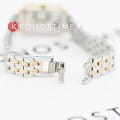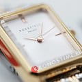Женские кварцевые часы. Центральные часовая, минутная и секундная стрелки. Серебристый циферблат. Восьмиугольный корпус выполнен из металла с IP покрытием цвета розового золота. Размер корпуса составляет 19,5 х 24 мм, толщина 7 мм. Стальной браслет с частичным покрытием, браслетная застежка. Прочное минеральное стекло устойчивое к мелким механическим повреждениям. Водостойкость WR 30 (брызги).