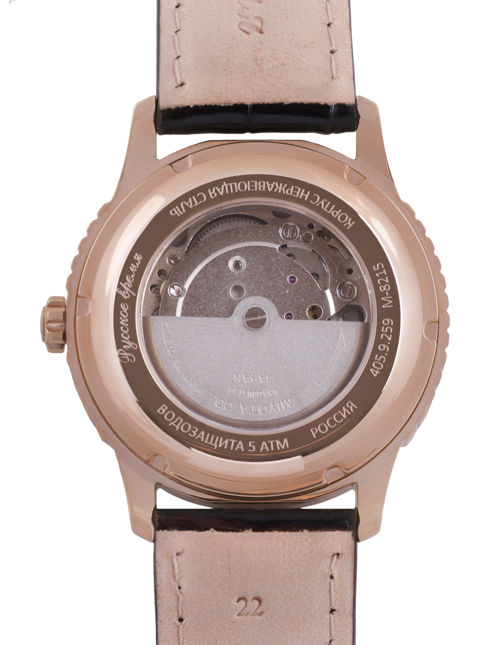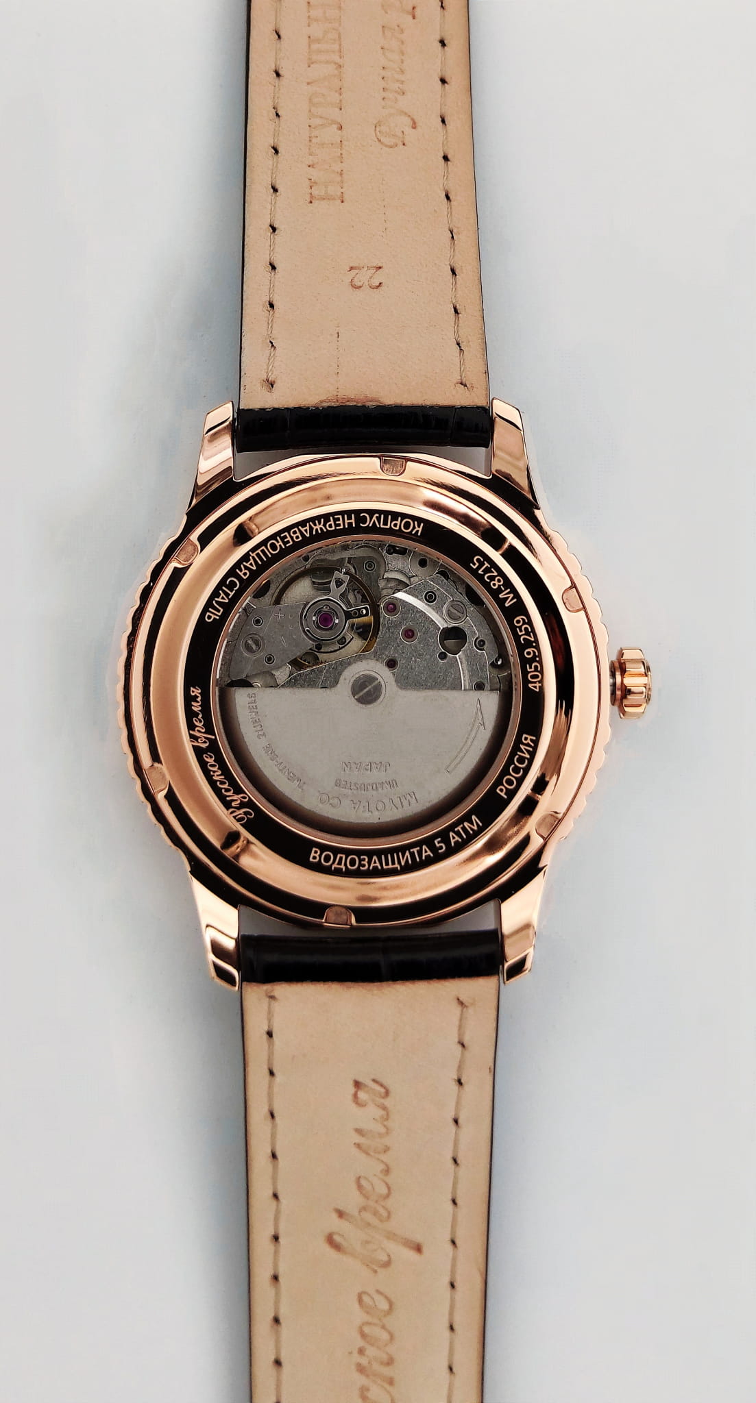 Точность хода обеспечивается надежным механическим механизмом с автоподзаводом Miyota 8215 (Япония). Этот высокоточный механизм гарантирует, что ваши часы всегда будут показывать точное время без необходимости регулярной подзарядки батареи. Заводная система работает от движения руки, что делает эти часы особенно удобными и практичными.