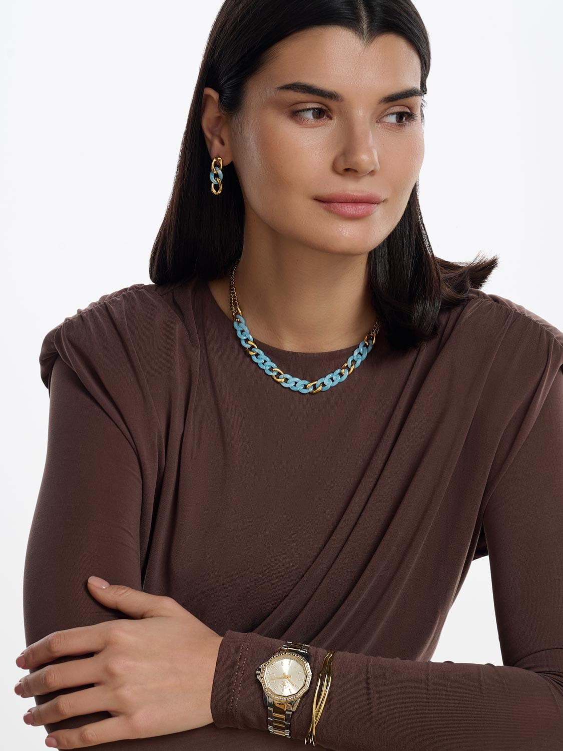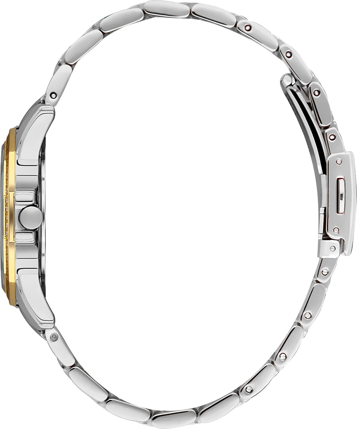 Женские кварцевые часы Santa Barbara Polo & Racquet Club — это изысканный и привлекательный аксессуар. Корпус диаметром 34 мм выполнен из латуни. БезельБезельВнешний ободок, закрепляющий стекло. В спортивных часах так называется поворотное кольцо с делениями на циферблате, выполняет роль таймера – замеряет отрезки времени на шкале. Неподвижный безель – элемент декора. Однонаправленно вращающийся безель на дайверских часах позволяет фиксировать моменты погружения и выныривания на поверхность. с IP-покрытиемIP-покрытиеМетод ионного напыления. Демонстрирует повышенную устойчивость к истиранию, окислению и химическим веществам. Под воздействием высокого давления и температуры около 1500°C молекулы металла надёжно соединяются с частицами корпуса часов. 12-гранной формы украшен кристаллами. Циферблат золотистого цвета выполнен по технологии Sunray («солнечные лучи») и оформлен штрихами и стрелками. Стрелки с люминесцентным покрытиемЛюминесцентное покрытиеПозволяет считывать показания времени в темноте. Производители наносят на стрелки, часовые индексы, безель или поверхность циферблата светонакопительный состав, дающий холодное свечение., обеспечивающим хорошую читаемость в темноте. Циферблат защищён минеральным стекломМинеральное стеклоМинеральное стекло представляет собой искусственно выращенный минерал кварца. Такое стекло отличается особой устойчивостью к повреждениям и царапинам. Уступает по некоторым качествам сапфировому стеклу.. Механизм — кварцевый калибр Miyota 2035. Заводная головка с защитой повышает надёжность. Часы оснащены стальным браслетом с частичным IP-покрытиемIP-покрытиеМетод ионного напыления. Демонстрирует повышенную устойчивость к истиранию, окислению и химическим веществам. Под воздействием высокого давления и температуры около 1500°C молекулы металла надёжно соединяются с частицами корпуса часов. на раскладной застёжкеРаскладная застёжкаТакой тип застёжки используется только на браслетах из металла. Она никогда не раскрывается полностью, происходит разделение на 2 и более частей. Раскладывающая застёжка снизит вероятность потери часов к минимуму.. Водонепроницаемость 50 м позволяет использовать часы в повседневных условиях. Идеальный выбор для тех, кто ценит американское качество и женственный дизайн.