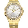 Женские кварцевые часы Santa Barbara Polo & Racquet Club — это стильный и яркий аксессуар для современной девушки. Корпус диаметром 35 мм выполнен из латуни с IP-покрытиемIP-покрытиеМетод ионного напыления. Демонстрирует повышенную устойчивость к истиранию, окислению и химическим веществам. Под воздействием высокого давления и температуры около 1500°C молекулы металла надёжно соединяются с частицами корпуса часов.. БезельБезельВнешний ободок, закрепляющий стекло. В спортивных часах так называется поворотное кольцо с делениями на циферблате, выполняет роль таймера – замеряет отрезки времени на шкале. Неподвижный безель – элемент декора. Однонаправленно вращающийся безель на дайверских часах позволяет фиксировать моменты погружения и выныривания на поверхность. инкрустирован кристаллами, придающими изделию сияние и изысканность. Циферблат белого цвета оформлен по технологии Sunray («солнечные лучи»), дополнен накладными метками в виде римских цифр и штрихов, а также фирменным логотипом. Стрелки и метки с люминесцентным покрытиемЛюминесцентное покрытиеПозволяет считывать показания времени в темноте. Производители наносят на стрелки, часовые индексы, безель или поверхность циферблата светонакопительный состав, дающий холодное свечение., обеспечивающим хорошую читаемость в темноте. Циферблат защищён минеральным стекломМинеральное стеклоМинеральное стекло представляет собой искусственно выращенный минерал кварца. Такое стекло отличается особой устойчивостью к повреждениям и царапинам. Уступает по некоторым качествам сапфировому стеклу.. Механизм — кварцевый калибр Miyota 2035. Часы оснащены стальным браслетом с IP-покрытиемIP-покрытиеМетод ионного напыления. Демонстрирует повышенную устойчивость к истиранию, окислению и химическим веществам. Под воздействием высокого давления и температуры около 1500°C молекулы металла надёжно соединяются с частицами корпуса часов. и раскладной застёжкойРаскладная застёжкаТакой тип застёжки используется только на браслетах из металла. Она никогда не раскрывается полностью, происходит разделение на 2 и более частей. Раскладывающая застёжка снизит вероятность потери часов к минимуму.. Водонепроницаемость 50 м позволяет использовать часы в повседневных условиях. Идеальный выбор для тех, кто ценит блеск, стиль и качество.
