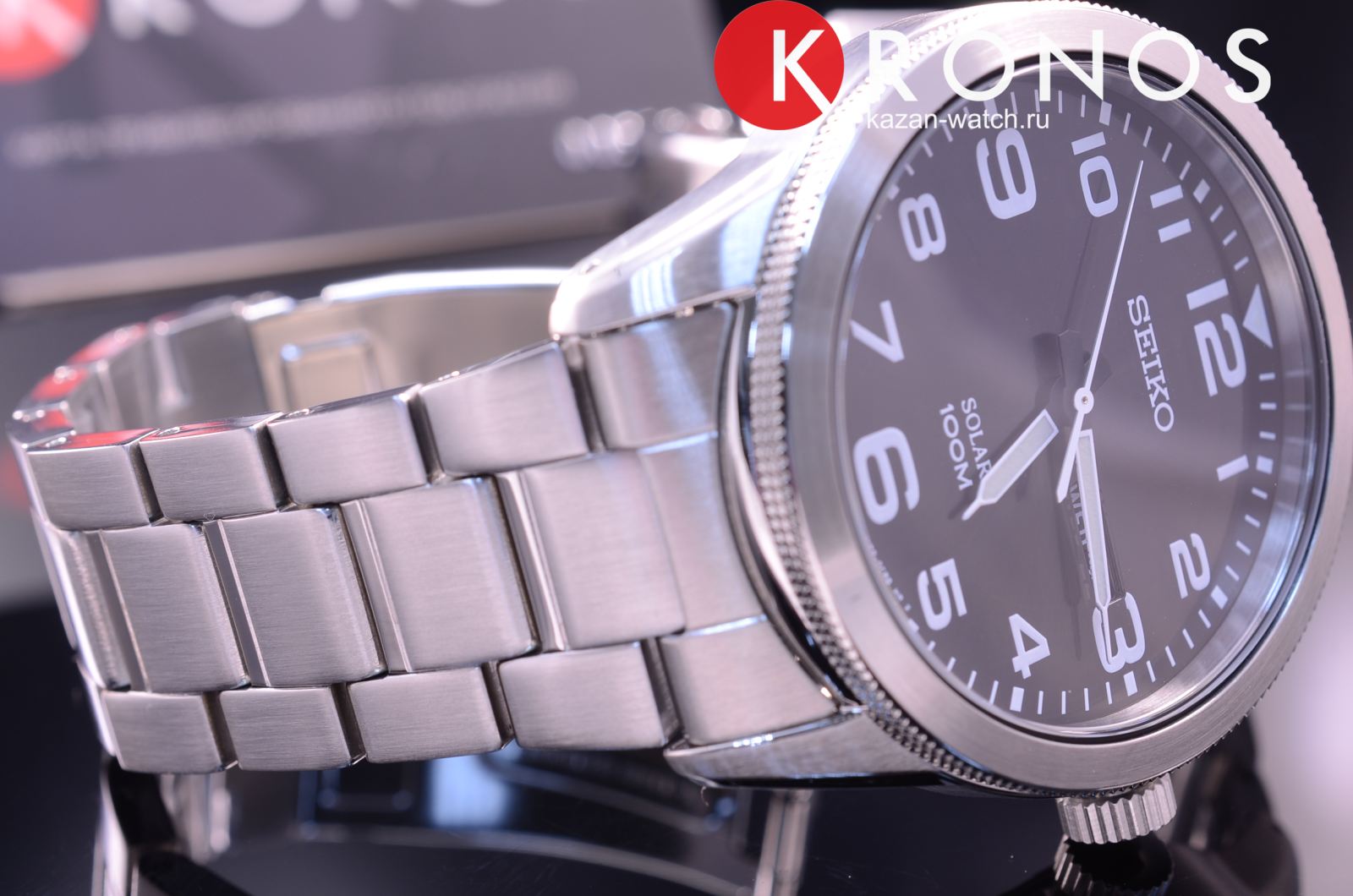 Часы оснащены японским солнечным кварцевым механизмом Seiko калибра V158, обеспечивающим точный ход и длительное время работы без замены батареи. Циферблат защищён , устойчивым к царапинам. Функции включают отображение даты и дня недели.