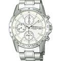 Мужские кварцевые часы-хронограф Seiko из коллекции Spirit — это надёжный и функциональный аксессуар. Корпус диаметром 38,5 мм и толщиной 9,6 мм выполнен из нержавеющей стали 316L. Циферблат бежевого цвета оформлен индексами, стрелками и тремя субциферблатами хронографа. Окошко даты расположено в положении 3 часов. На циферблате присутствует шкала тахиметраТахиметрРазмеченная шкала, располагается на ободке или безеле часов. Тахиметр позволяет рассчитать скорость на определённом участке пути, расстояние измеряется в километрах или милях.. Стрелки и метки с люминесцентным покрытиемЛюминесцентное покрытиеПозволяет считывать показания времени в темноте. Производители наносят на стрелки, часовые индексы, безель или поверхность циферблата светонакопительный состав, дающий холодное свечение., обеспечивающим хорошую читаемость в темноте. Циферблат защищён прочным закалённым минеральным стеклом Hardlex. Механизм — японское кварцевое движение калибра 7T92 с функциями хронографаХронографФункция позволяет измерять отрезки времени с особой точностью: часы, минуты, секунды. Верным признаком хронографа является наличие на циферблате 3 дополнительных окошек-счётчиков. и секундомераСекундомерСекундоме́р — прибор, способный измерять интервалы времени с точностью до долей секунды.. Часы оснащены стальным браслетом на раскладной застёжкеРаскладная застёжкаТакой тип застёжки используется только на браслетах из металла. Она никогда не раскрывается полностью, происходит разделение на 2 и более частей. Раскладывающая застёжка снизит вероятность потери часов к минимуму. с фиксатором. Водонепроницаемость 100 м позволяет использовать часы для плавания и повседневного ношения. Идеальный выбор для тех, кто ценит японское качество и универсальный дизайн.