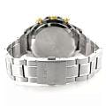 Мужские кварцевые часы-хронограф Seiko — это надёжный и функциональный аксессуар. Корпус диаметром 42 мм выполнен из нержавеющей стали 316L. БезельБезельВнешний ободок, закрепляющий стекло. В спортивных часах так называется поворотное кольцо с делениями на циферблате, выполняет роль таймера – замеряет отрезки времени на шкале. Неподвижный безель – элемент декора. Однонаправленно вращающийся безель на дайверских часах позволяет фиксировать моменты погружения и выныривания на поверхность. с PVD-покрытиемPVDУльтратонкое покрытие наносится в технике вакуумного напыления, сочетает в себе нитрид титана особой прочности со слоем золота или оксида хрома. Несёт в себе декоративную или защитную функцию.. Циферблат оформлен индексами, стрелками и тремя субциферблатами хронографа. Окошко даты расположено в положении между 4 и 5 часов. На циферблате присутствует шкала тахиметраТахиметрРазмеченная шкала, располагается на ободке или безеле часов. Тахиметр позволяет рассчитать скорость на определённом участке пути, расстояние измеряется в километрах или милях.. Стрелки и метки с люминесцентным покрытиемЛюминесцентное покрытиеПозволяет считывать показания времени в темноте. Производители наносят на стрелки, часовые индексы, безель или поверхность циферблата светонакопительный состав, дающий холодное свечение., обеспечивающим хорошую читаемость в темноте. Циферблат защищён прочным закалённым минеральным стеклом Hardlex. Механизм — японское кварцевое движение калибра 8T67 с функциями хронографаХронографФункция позволяет измерять отрезки времени с особой точностью: часы, минуты, секунды. Верным признаком хронографа является наличие на циферблате 3 дополнительных окошек-счётчиков. и секундомераСекундомерСекундоме́р — прибор, способный измерять интервалы времени с точностью до долей секунды. (точность 1/5 сек., время измерения до 12 часов). Заводная головка с защитой обеспечивает повышенную надёжность. Часы оснащены стальным браслетом на тройной раскладной застёжкеРаскладная застёжкаТакой тип застёжки используется только на браслетах из металла. Она никогда не раскрывается полностью, происходит разделение на 2 и более частей. Раскладывающая застёжка снизит вероятность потери часов к минимуму. с фиксатором. Водонепроницаемость 100 м позволяет использовать часы для плавания и повседневного ношения. Идеальный выбор для тех, кто ценит японское качество и универсальный дизайн.