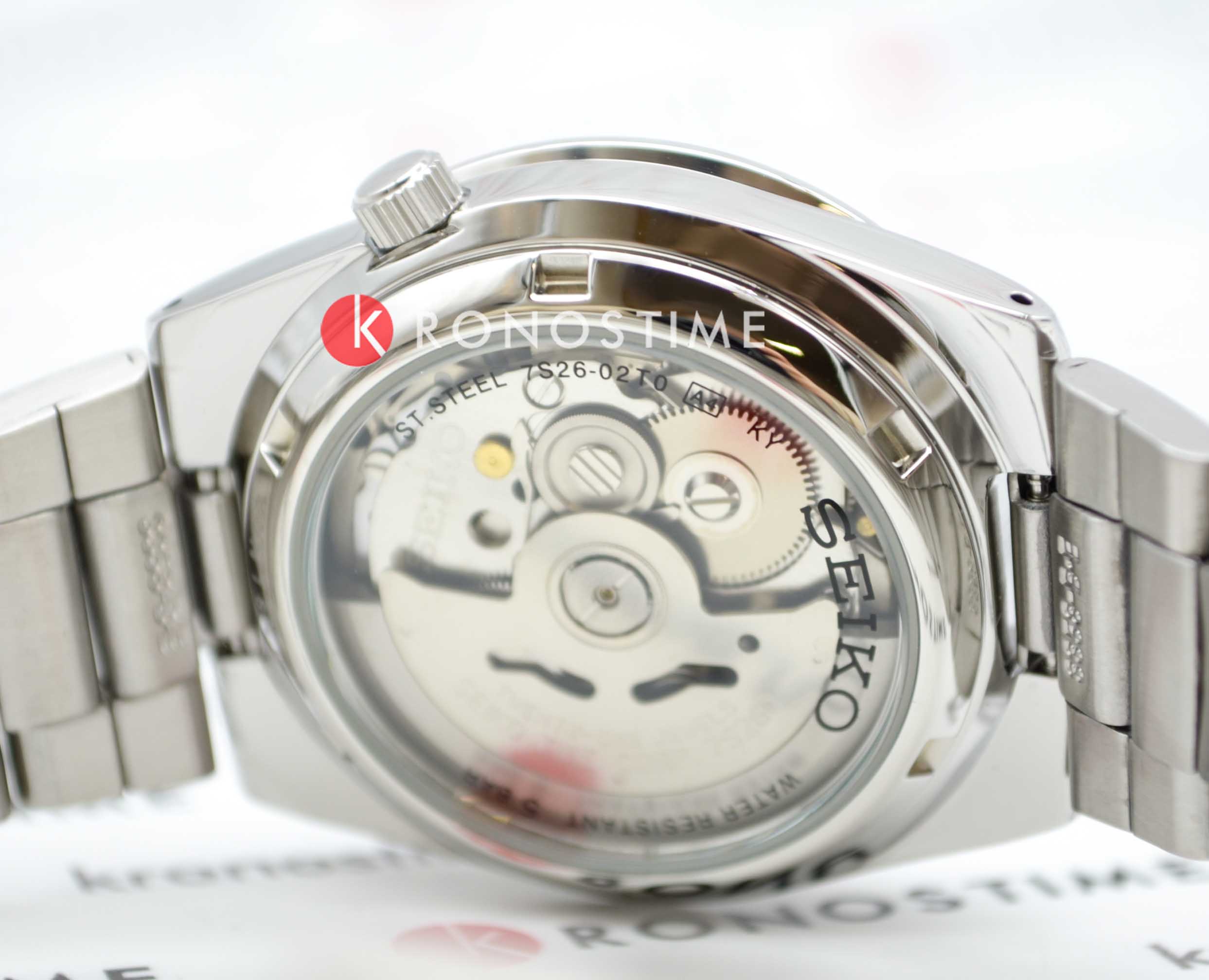 Наручные часы с золотистыми деталями выполнены в классическом стиле, спортивные элементы делают акцент на надёжности и функциональности модели. Традиционный характер выражается в оснащении аксессуара японским механизмом Seiko 7S26 с возможностью ручного и автоматического завода. Калибр отличается сохранением запаса хода на 40 часов, его работу можно отследить через прозрачную завинчивающуюся заднюю крышку. В качестве основного материала была выбрана хирургическая сталь 316L, характеризующаяся устойчивостью к царапинам, повреждениям. Защиту циферблата обеспечивает прочное минеральное стеклоМинеральное стеклоМинеральное стекло представляет собой искусственно выращенный минерал кварца. Такое стекло отличается особой устойчивостью к повреждениям и царапинам. Уступает по некоторым качествам сапфировому стеклу. стекло Hardlex. На стрелки и метки нанесено яркое люминесцентное покрытиеЛюминесцентное покрытиеПозволяет считывать показания времени в темноте. Производители наносят на стрелки, часовые индексы, безель или поверхность циферблата светонакопительный состав, дающий холодное свечение.. Водостойкость при давлении до 5 бар позволяет принимать душ в часах, они выдержат дождь или мойку машины. На позиции 3 часов размещено окошко даты и дня недели. Диаметр корпуса: 36 мм.
