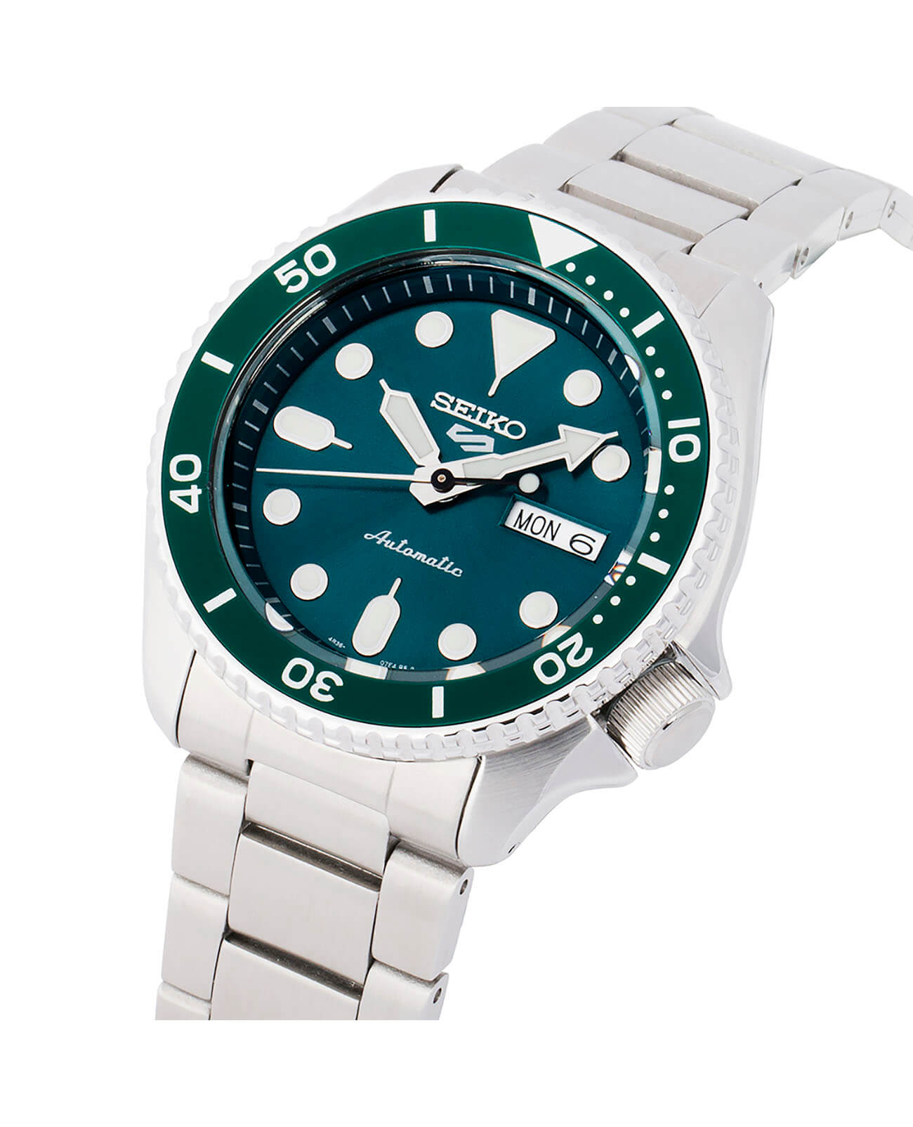 Часы Seiko 5 Sports SRPD61K1 сочетают в себе элегантный дизайн и надёжность, характерные для японского часового мастерства. Корпус диаметром 42,5 мм выполнен из нержавеющей стали, а зелёный циферблат защищён минеральным стекломМинеральное стеклоМинеральное стекло представляет собой искусственно выращенный минерал кварца. Такое стекло отличается особой устойчивостью к повреждениям и царапинам. Уступает по некоторым качествам сапфировому стеклу. с повышенной прочностью.