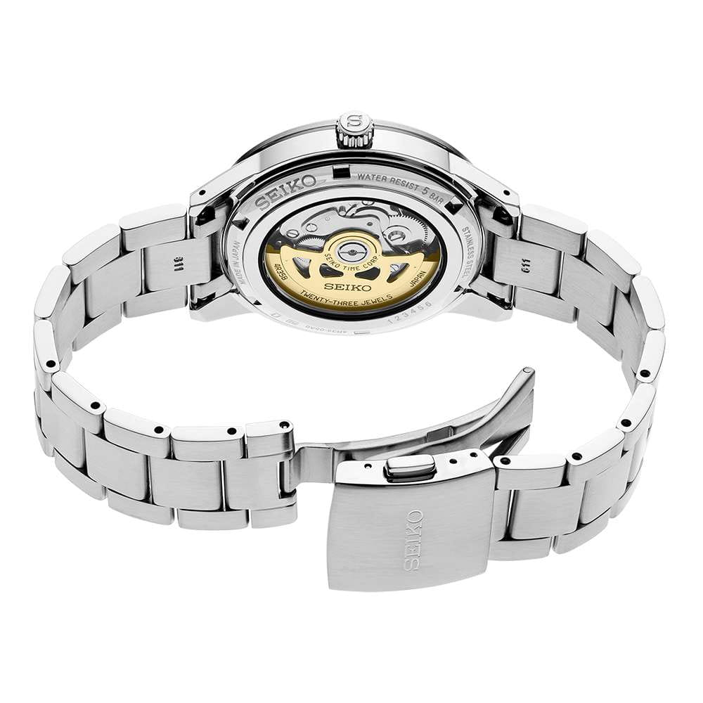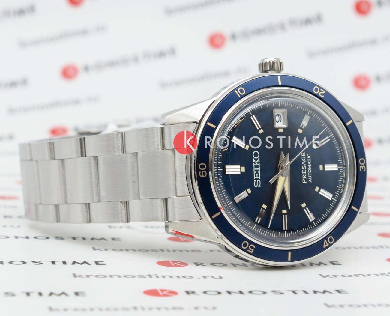 Мужские наручные часы Seiko SRPG05J1 из коллекции Presage Style 60s сочетают в себе классический дизайн и надежность современных технологий. Модель обладает круглым корпусом диаметром 40,8 мм, изготовленным из нержавеющей стали, что обеспечивает высокую устойчивость к внешним воздействиям . Толщина корпуса составляет 12 мм, а для защиты используется минеральное стеклоМинеральное стеклоМинеральное стекло представляет собой искусственно выращенный минерал кварца. Такое стекло отличается особой устойчивостью к повреждениям и царапинам. Уступает по некоторым качествам сапфировому стеклу. Hardlex Crystal, обеспечивающее прочную защиту от царапин .  БезельБезельВнешний ободок, закрепляющий стекло. В спортивных часах так называется поворотное кольцо с делениями на циферблате, выполняет роль таймера – замеряет отрезки времени на шкале. Неподвижный безель – элемент декора. Однонаправленно вращающийся безель на дайверских часах позволяет фиксировать моменты погружения и выныривания на поверхность. с PVD-покрытиемPVDУльтратонкое покрытие наносится в технике вакуумного напыления, сочетает в себе нитрид титана особой прочности со слоем золота или оксида хрома. Несёт в себе декоративную или защитную функцию.. Браслет также выполнен из нержавеющей стали с раскладной застежкойРаскладная застёжкаТакой тип застёжки используется только на браслетах из металла. Она никогда не раскрывается полностью, происходит разделение на 2 и более частей. Раскладывающая застёжка снизит вероятность потери часов к минимуму., гарантирующей комфортное ношение . Циферблат глубокого синего цвета украшен текстурой, которая подчеркивает элегантный стиль модели. Часы оснащены функцией отображения даты на позиции «3 часа» . Модель работает на автоматическом механизме с калибром 4R35, который включает 23 камня и обладает запасом хода до 41 часа . Водонепроницаемость составляет WR 50, что позволяет защитить корпус от случайных брызг и кратковременного контакта с водой . Вдохновленные культурой 1960-х годов, эти часы демонстрируют уникальный стиль и внимание к деталям, сохраняя при этом практичность для повседневного использования.