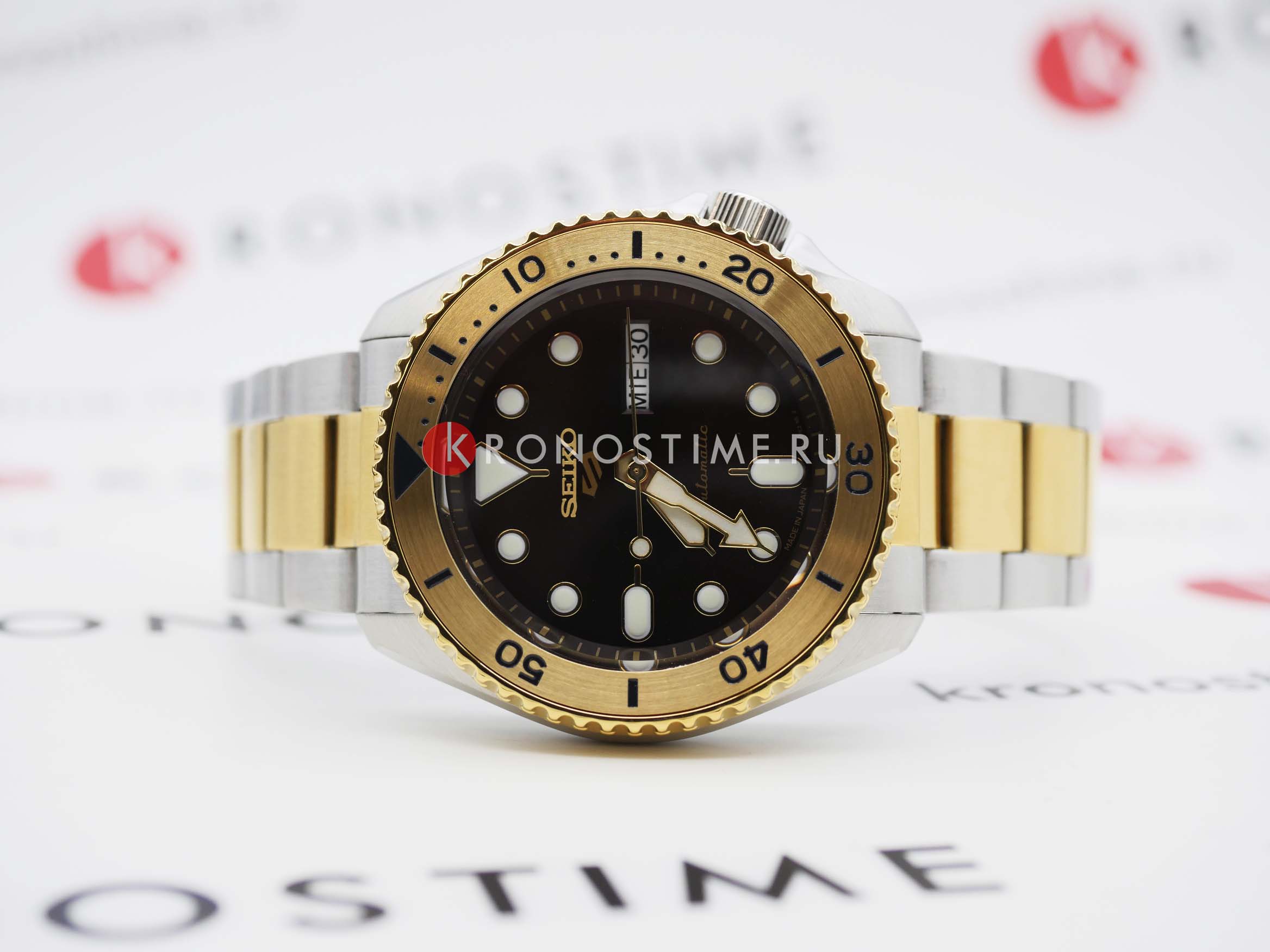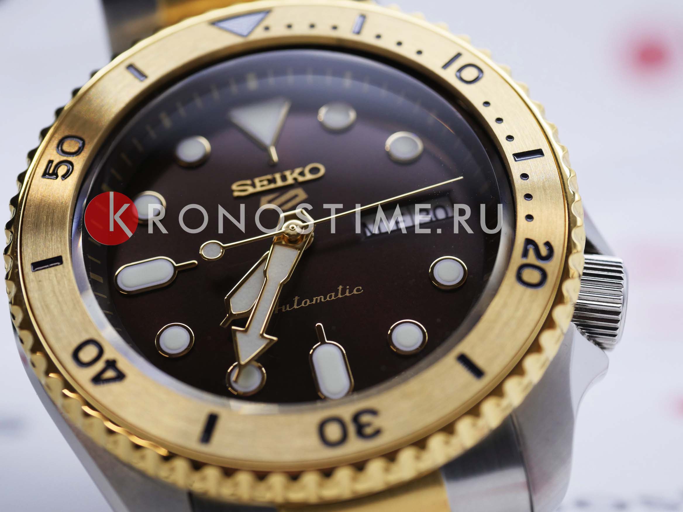 Часы Seiko 5 Sports SRPK24 сочетают в себе элегантный дизайн и надёжность, характерные для японского часового мастерства. Корпус диаметром 42,5 мм выполнен из нержавеющей стали с двухцветным PVD-покрытиемPVDУльтратонкое покрытие наносится в технике вакуумного напыления, сочетает в себе нитрид титана особой прочности со слоем золота или оксида хрома. Несёт в себе декоративную или защитную функцию.: сочетание серебристого и золотистого тонов придаёт часам утончённый вид. Коричневый циферблат защищён минеральным стекломМинеральное стеклоМинеральное стекло представляет собой искусственно выращенный минерал кварца. Такое стекло отличается особой устойчивостью к повреждениям и царапинам. Уступает по некоторым качествам сапфировому стеклу. с повышенной прочностью. ​​