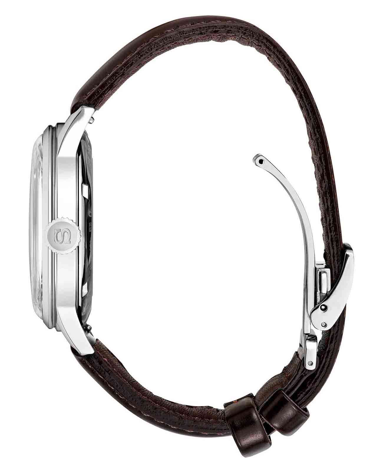 Окошко даты располагается на отметке 3 часа, обеспечивая удобный доступ к информации о текущей дате. Класс водозащиты — 50 метров, что защитит часы от случайных брызг воды или капель дождя. Кожаный ремешок на раскладной застёжкеРаскладная застёжкаТакой тип застёжки используется только на браслетах из металла. Она никогда не раскрывается полностью, происходит разделение на 2 и более частей. Раскладывающая застёжка снизит вероятность потери часов к минимуму. завершает образ, делая эти часы идеальным аксессуаром для любого случая.