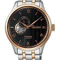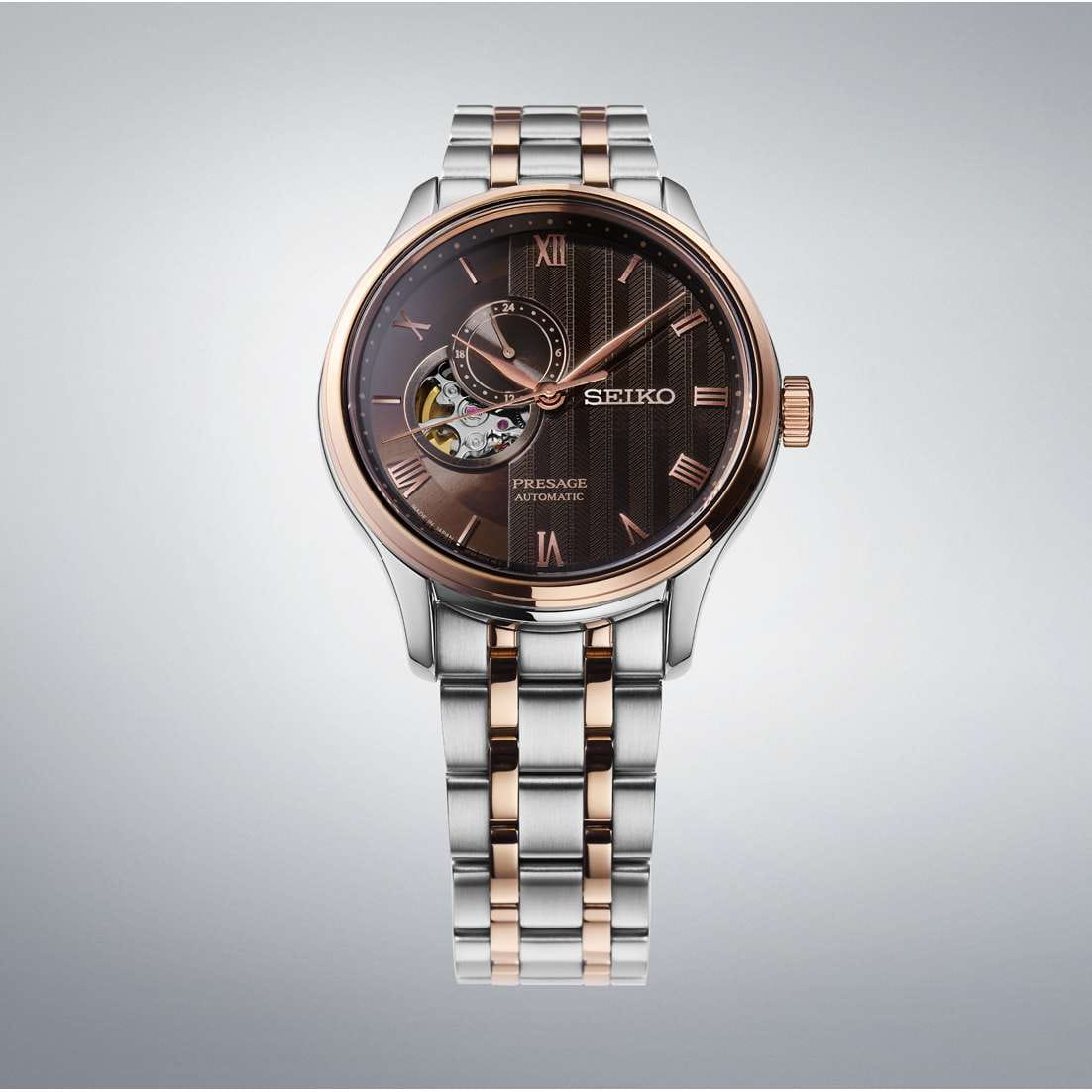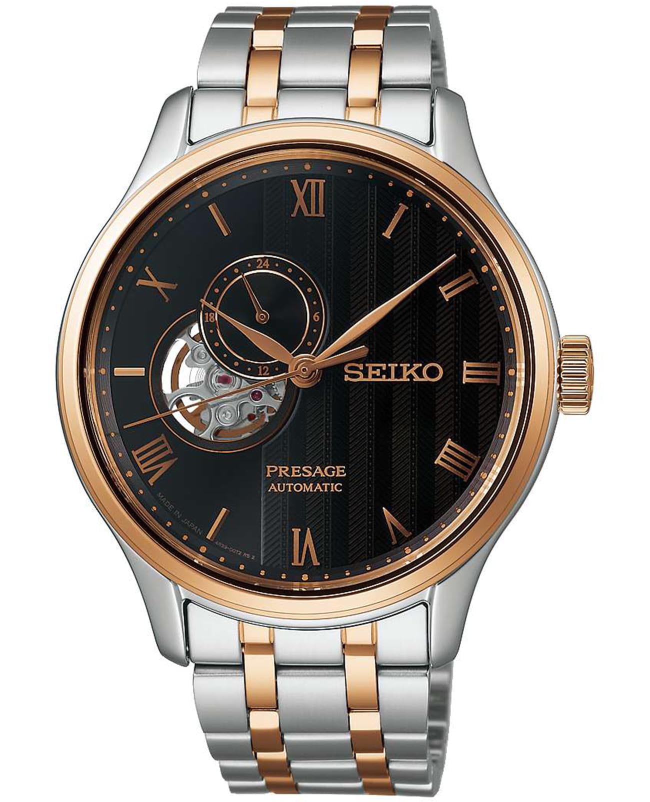 Модель Seiko SSA466 из коллекции Presage Japanese Garden — это элегантные автоматические часы, вдохновлённые эстетикой японских садов и философией дзен. Корпус диаметром 41 мм выполнен из нержавеющей стали с комбинированной полировкой и прозрачной задней крышкой. Водозащита составляет 30 метров — оптимально для повседневной носки. Фиксированный стальной безельБезельВнешний ободок, закрепляющий стекло. В спортивных часах так называется поворотное кольцо с делениями на циферблате, выполняет роль таймера – замеряет отрезки времени на шкале. Неподвижный безель – элемент декора. Однонаправленно вращающийся безель на дайверских часах позволяет фиксировать моменты погружения и выныривания на поверхность. с PVD-покрытиемPVDУльтратонкое покрытие наносится в технике вакуумного напыления, сочетает в себе нитрид титана особой прочности со слоем золота или оксида хрома. Несёт в себе декоративную или защитную функцию. подчёркивает гармоничные формы корпуса. Циферблат насыщенного цвета с тонкой текстурой напоминает волны гравия в японском саду. Открытое окно «open heart» на 9 часах позволяет наблюдать за работой механизма. Циферблат защищён двойным выпуклым сапфировым стекломСапфировое стеклоПрочный и надёжный материал из кристалла сапфира синтетического происхождения, характеризующийся особой твёрдостью и устойчивостью к царапинам и повреждениям. с внутренним антибликовым покрытиемАнтибликовое покрытиеСлой оксида металла в 0,13-0,3 микрон, благодаря которому стекло часов не бликует и не отражает свет. Антибликовое покрытие уменьшает отражение света в 10 раз, обеспечивая отличную читаемость показателей циферблата., устойчивым к царапинам и бликам. Внутри установлен автоматический калибр Seiko 4R39 с ручным подзаводом, функцией остановки секундной стрелки и запасом хода до 41 часа. Браслет выполнен из нержавеющей стали и оснащён удобной застёжкой «бабочка» с кнопкамиЗастёжка "бабочка"Такой вид застёжки дополняется предохранителями, помогающими избежать случайного раскрытия браслета. Обладают изящным исполнением. . Seiko — это стильное и сбалансированное решение для ценителей классики с японским характером, где сочетаются глубокий дизайн и надёжная механика.