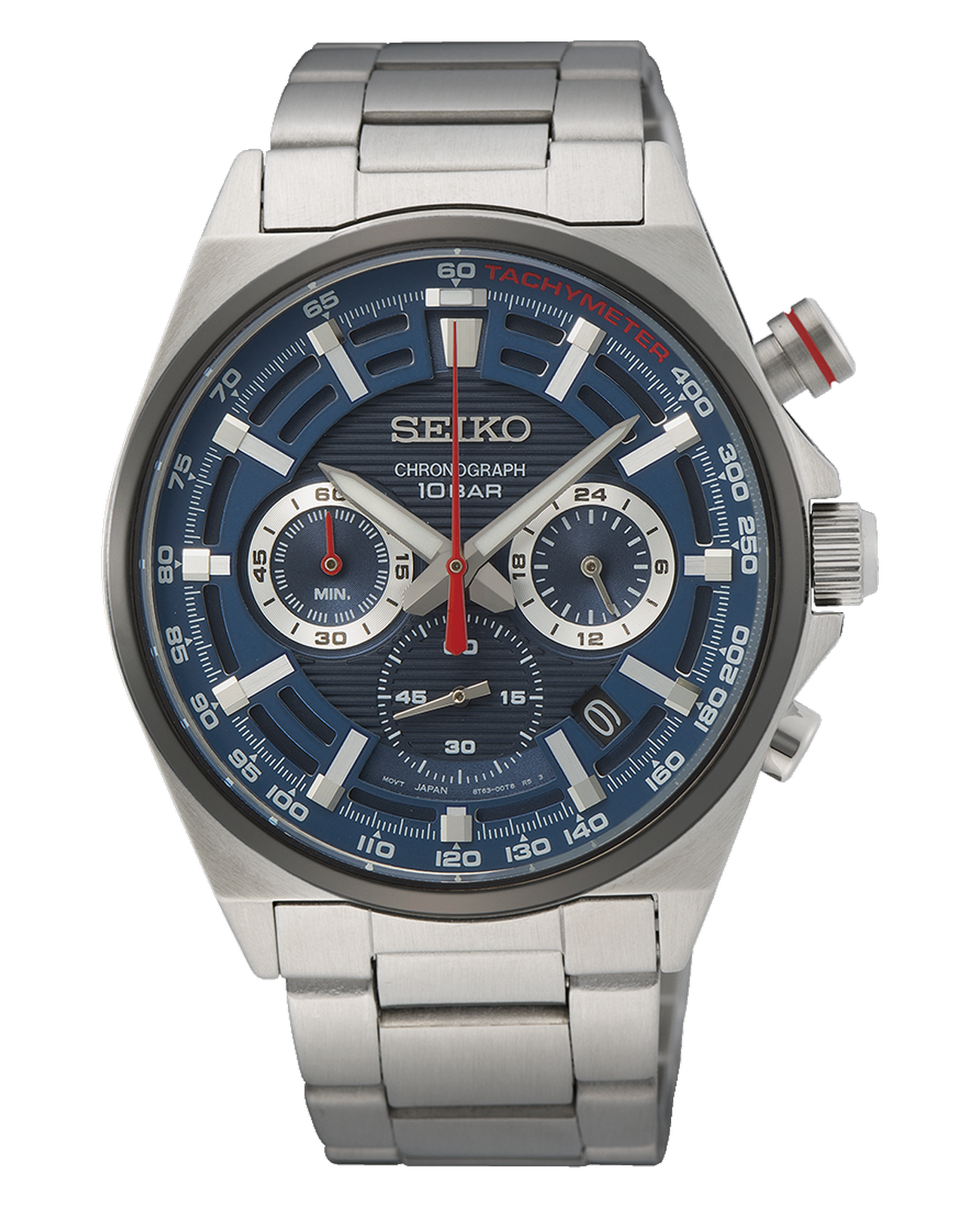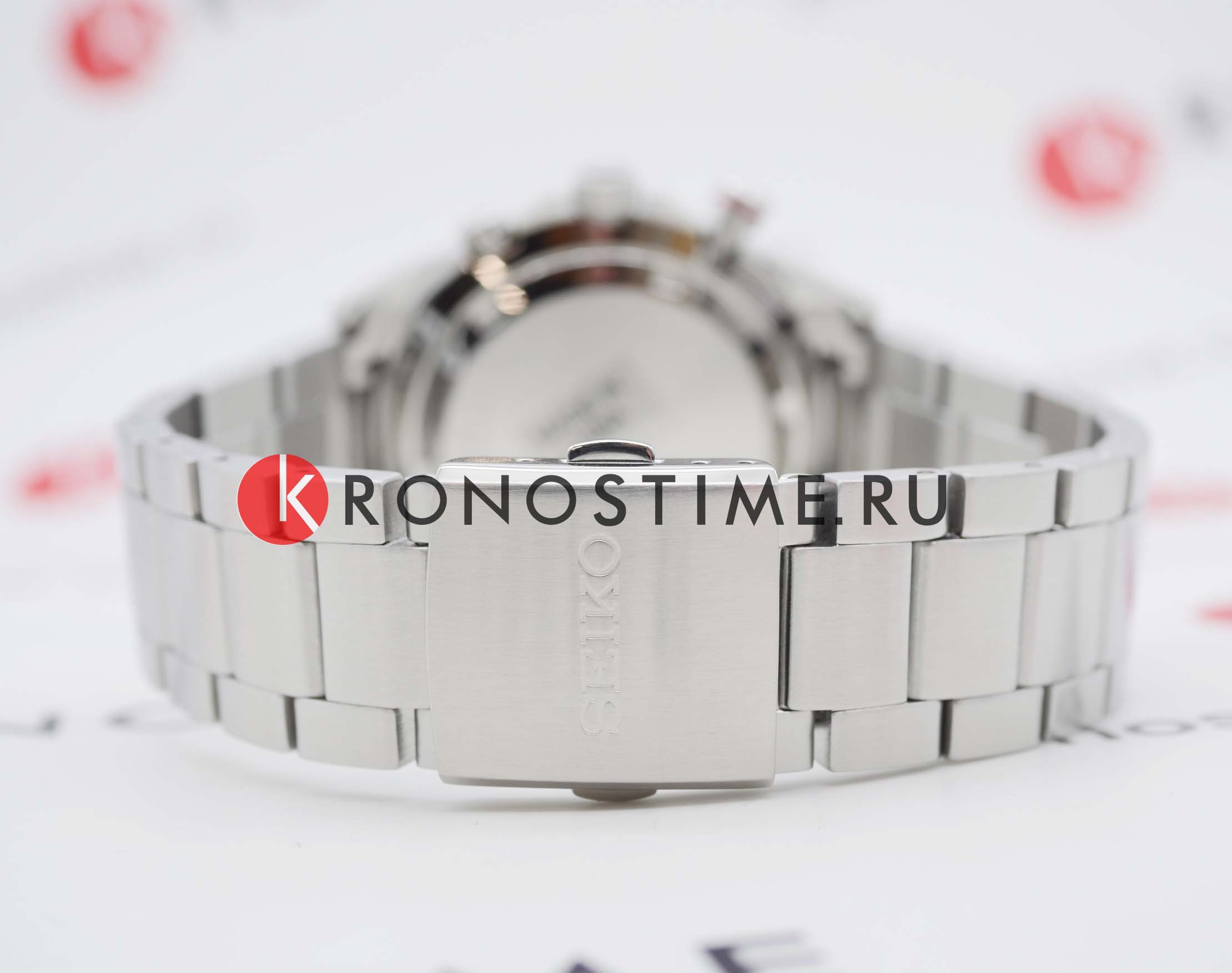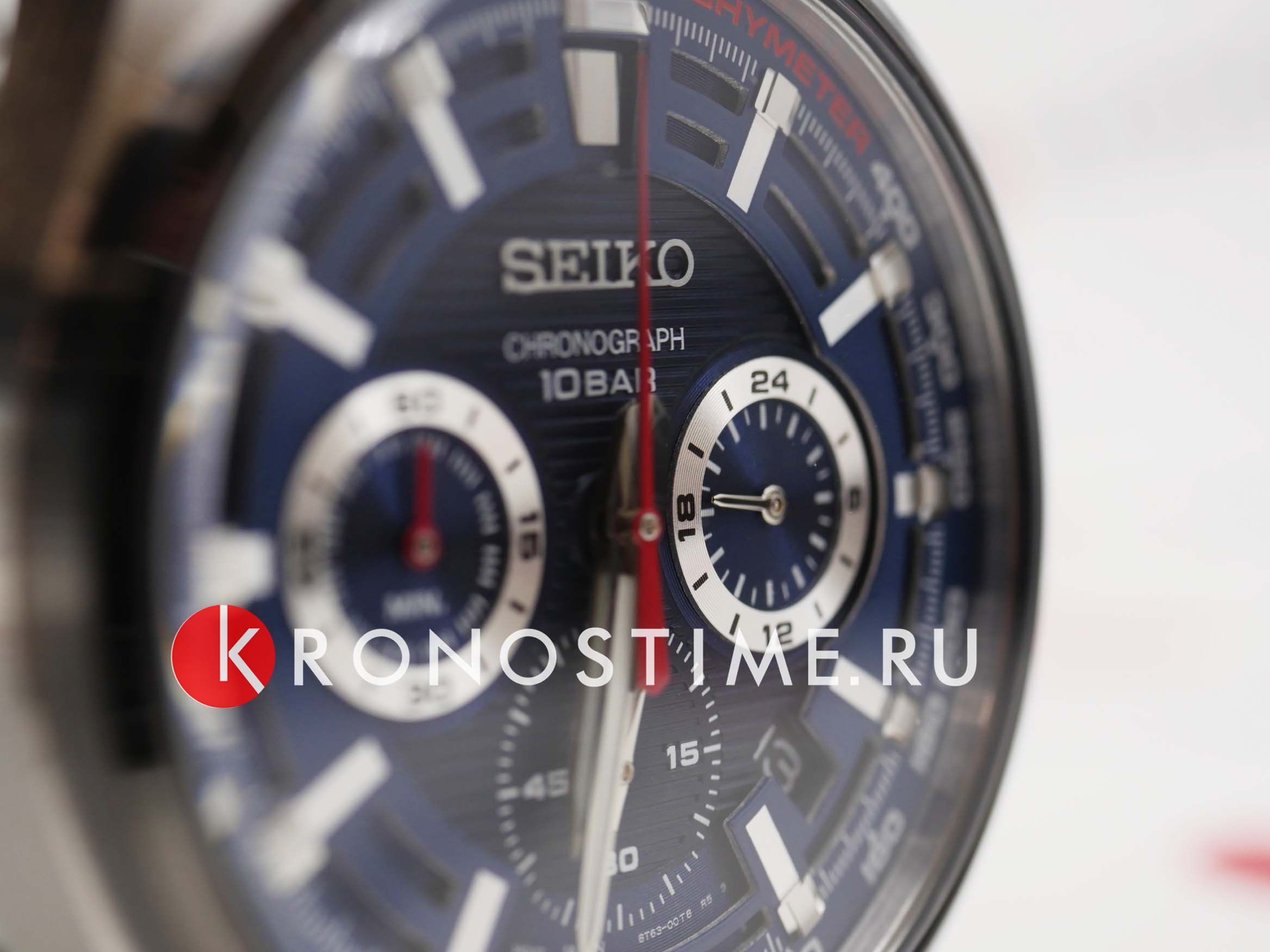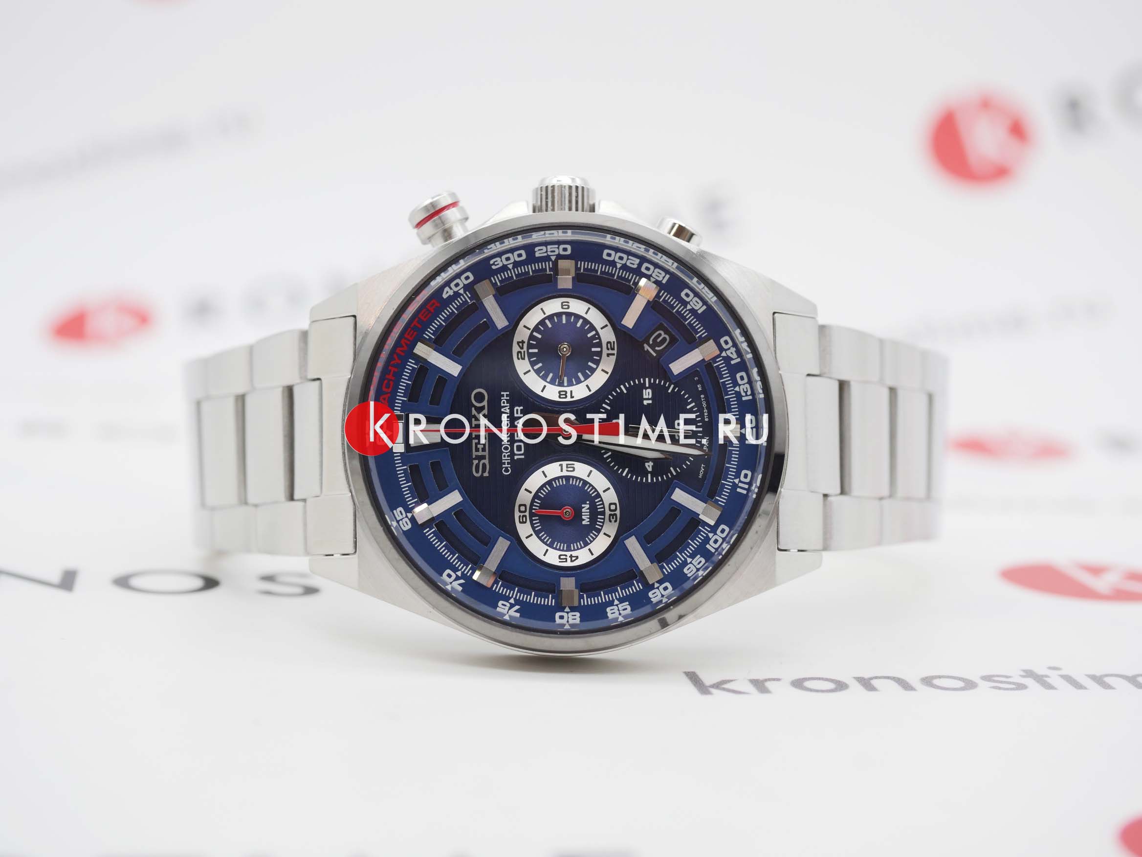 Мужские японские часы Seiko SSB407P1 c хронографомХронографФункция позволяет измерять отрезки времени с особой точностью: часы, минуты, секунды. Верным признаком хронографа является наличие на циферблате 3 дополнительных окошек-счётчиков., кварцевый механизм с высокой точностью. Минеральное стеклоМинеральное стеклоМинеральное стекло представляет собой искусственно выращенный минерал кварца. Такое стекло отличается особой устойчивостью к повреждениям и царапинам. Уступает по некоторым качествам сапфировому стеклу., устойчивое к появлению царапин, обладающее высокой прозрачностью. Класс водозащиты: 100 метров, позволит плавать, нырять и заниматься другими водными видами спорта. Корпус и браслет часов изготовлен из стали. Неподвижный безельБезельВнешний ободок, закрепляющий стекло. В спортивных часах так называется поворотное кольцо с делениями на циферблате, выполняет роль таймера – замеряет отрезки времени на шкале. Неподвижный безель – элемент декора. Однонаправленно вращающийся безель на дайверских часах позволяет фиксировать моменты погружения и выныривания на поверхность. со шкалой тахиметраТахиметрРазмеченная шкала, располагается на ободке или безеле часов. Тахиметр позволяет рассчитать скорость на определённом участке пути, расстояние измеряется в километрах или милях.. Стрелки и метки с люминесцентным покрытиемЛюминесцентное покрытиеПозволяет считывать показания времени в темноте. Производители наносят на стрелки, часовые индексы, безель или поверхность циферблата светонакопительный состав, дающий холодное свечение. LumiBrite. Браслет на раскладной застёжкеРаскладная застёжкаТакой тип застёжки используется только на браслетах из металла. Она никогда не раскрывается полностью, происходит разделение на 2 и более частей. Раскладывающая застёжка снизит вероятность потери часов к минимуму. с кнопками. СекундомерСекундомерСекундоме́р — прибор, способный измерять интервалы времени с точностью до долей секунды.. Окошко даты находится в положении между 4 и 5 часов.