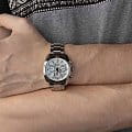 -приёмником, позволяющим определять и автоматически корректировать часовой пояс, дату, точное время. Модель получает энергию от солнечной панели, обеспечивая автономную работу часов. Японский кварцевый калибр Seiko 5X53 с точностью хода +/-15 секунд в месяц. Стекло из сапфира. Люминесцентная подсветкаЛюминесцентное покрытиеПозволяет считывать показания времени в темноте. Производители наносят на стрелки, часовые индексы, безель или поверхность циферблата светонакопительный состав, дающий холодное свечение. Lumibrite. Водостойкость 10 бар.Задняя крышка с гравировкой. Функция энергосбережения. Вечный календарьВечный календарьКлассическое часовое усложнение, представляющее собой календарь, рассчитанный на несколько лет вперёд (стандартно – до 2099 года). Определяет текущую дату, день недели, месяц. рассчитан до 28 февраля 2100 года. Мировое времяМировое время Полезное часовое усложнение, отображающее время в основных городах и известных областях по всему миру, оно связано с часовыми поясами, удобно для путешественников и бизнесменов. . Диаметр корпуса: 42,7 мм.