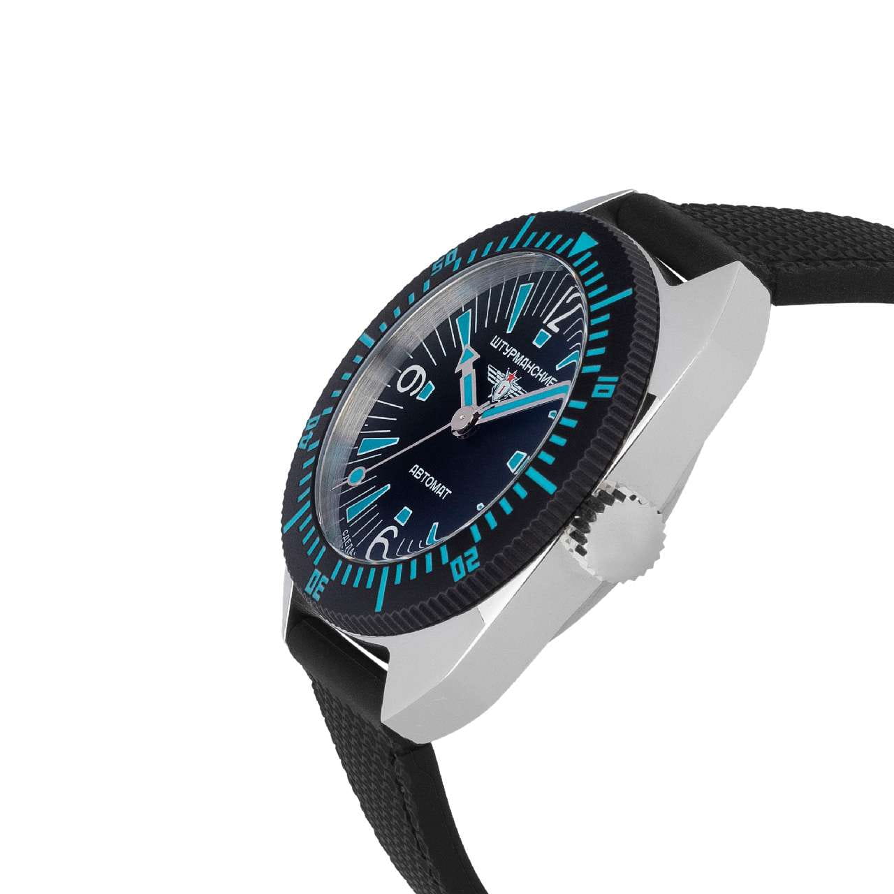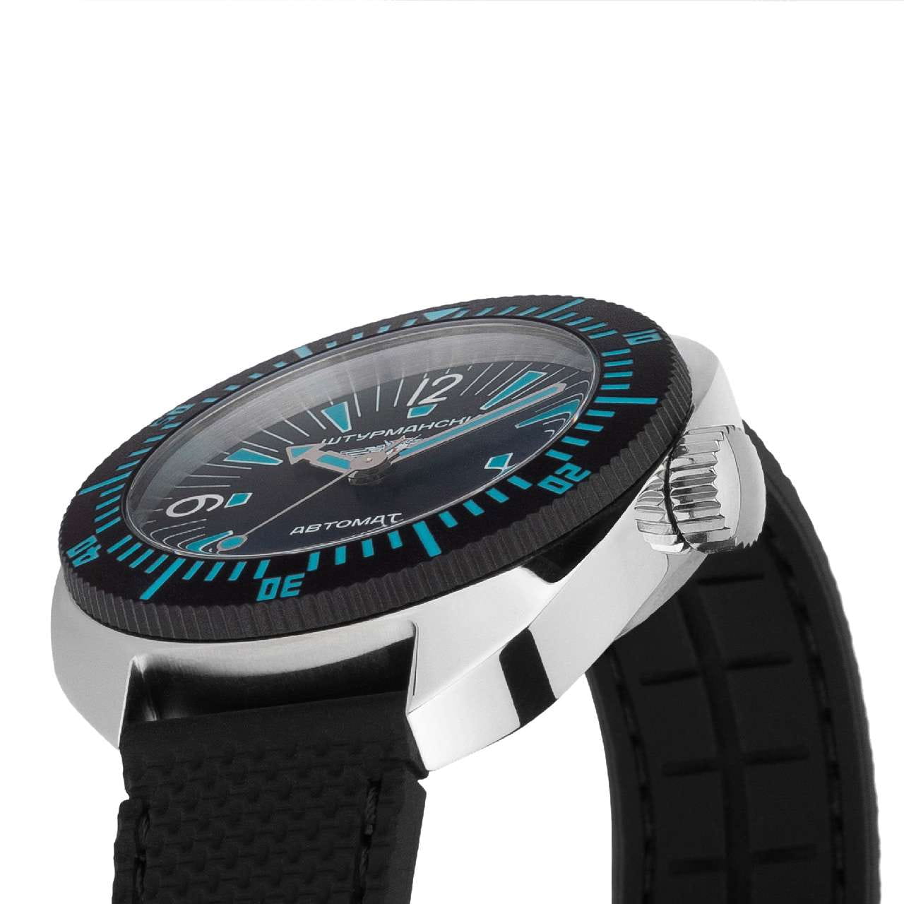 Мужские механические часы с автоподзаводом Штурманские Амфибия 2416/8881506 с высокой точностью. Корпус из нержавеющей стали диаметром 42 мм идеально сбалансирован и элегантен. Минеральное стеклоМинеральное стеклоМинеральное стекло представляет собой искусственно выращенный минерал кварца. Такое стекло отличается особой устойчивостью к повреждениям и царапинам. Уступает по некоторым качествам сапфировому стеклу. устойчивое к мелким механическим повреждениям. Силиконовый ремешок на стандартной застёжке, обеспечивает комфортное ношение. Класс водозащиты: 200 метров, позволит плавать, нырять и заниматься другими водными видами спорта. Стрелки и метки на циферблате имеют люминесцентное покрытиеЛюминесцентное покрытиеПозволяет считывать показания времени в темноте. Производители наносят на стрелки, часовые индексы, безель или поверхность циферблата светонакопительный состав, дающий холодное свечение. позволяющее легко определять время даже в темноте. Окошко даты находится в положении 3 часа. Рифленая заводная головка. БезельБезельВнешний ободок, закрепляющий стекло. В спортивных часах так называется поворотное кольцо с делениями на циферблате, выполняет роль таймера – замеряет отрезки времени на шкале. Неподвижный безель – элемент декора. Однонаправленно вращающийся безель на дайверских часах позволяет фиксировать моменты погружения и выныривания на поверхность. с PVD-покрытиемPVDУльтратонкое покрытие наносится в технике вакуумного напыления, сочетает в себе нитрид титана особой прочности со слоем золота или оксида хрома. Несёт в себе декоративную или защитную функцию. и минутной шкалой поворачивается в одном направлении.
