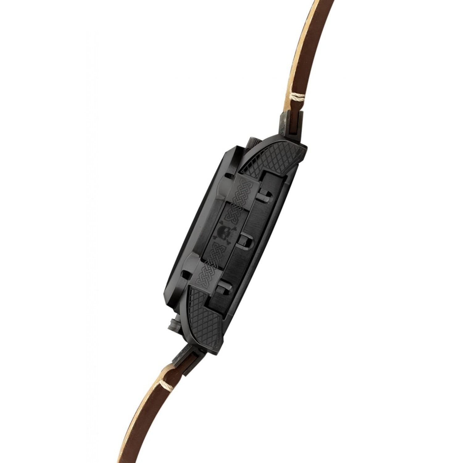 Российские механические наручные часы Слава Русская RUлетка 1906203/300-NH05, которые станут идеальным аксессуаром для повседневного ношения. Эти часы сочетают в себе элегантность и практичность, предлагая безупречный стиль и надежность. Оснащенные механизмом SEIKO NH05 с автоподзаводом, они обеспечивают точность и долговечность. Стальной корпус с черным PVDPVDУльтратонкое покрытие наносится в технике вакуумного напыления, сочетает в себе нитрид титана особой прочности со слоем золота или оксида хрома. Несёт в себе декоративную или защитную функцию. покрытием и сапфировым стекломСапфировое стеклоПрочный и надёжный материал из кристалла сапфира синтетического происхождения, характеризующийся особой твёрдостью и устойчивостью к царапинам и повреждениям. защищает циферблат с арабскими цифрами и необычными стрелками цифрами. БезельБезельВнешний ободок, закрепляющий стекло. В спортивных часах так называется поворотное кольцо с делениями на циферблате, выполняет роль таймера – замеряет отрезки времени на шкале. Неподвижный безель – элемент декора. Однонаправленно вращающийся безель на дайверских часах позволяет фиксировать моменты погружения и выныривания на поверхность. часов с PVDPVDУльтратонкое покрытие наносится в технике вакуумного напыления, сочетает в себе нитрид титана особой прочности со слоем золота или оксида хрома. Несёт в себе декоративную или защитную функцию. покрытием черного цвета. Особенность часов - искусственные бриллианты в глазах орлов и изображение черепов на циферблате. Это первые в мире часы с шестизарядным револьверным барабаном. В барабане — один патрон. Старинная забава русских офицеров и любителей острых ощущений со всего мира. Водозащита на часах до 10 ATM, что делает их надежными в различных условиях. Кожаный коричневый ремешок с застежкой «бабочка»Застёжка "бабочка"Такой вид застёжки дополняется предохранителями, помогающими избежать случайного раскрытия браслета. Обладают изящным исполнением. завершает этот изысканный образ.