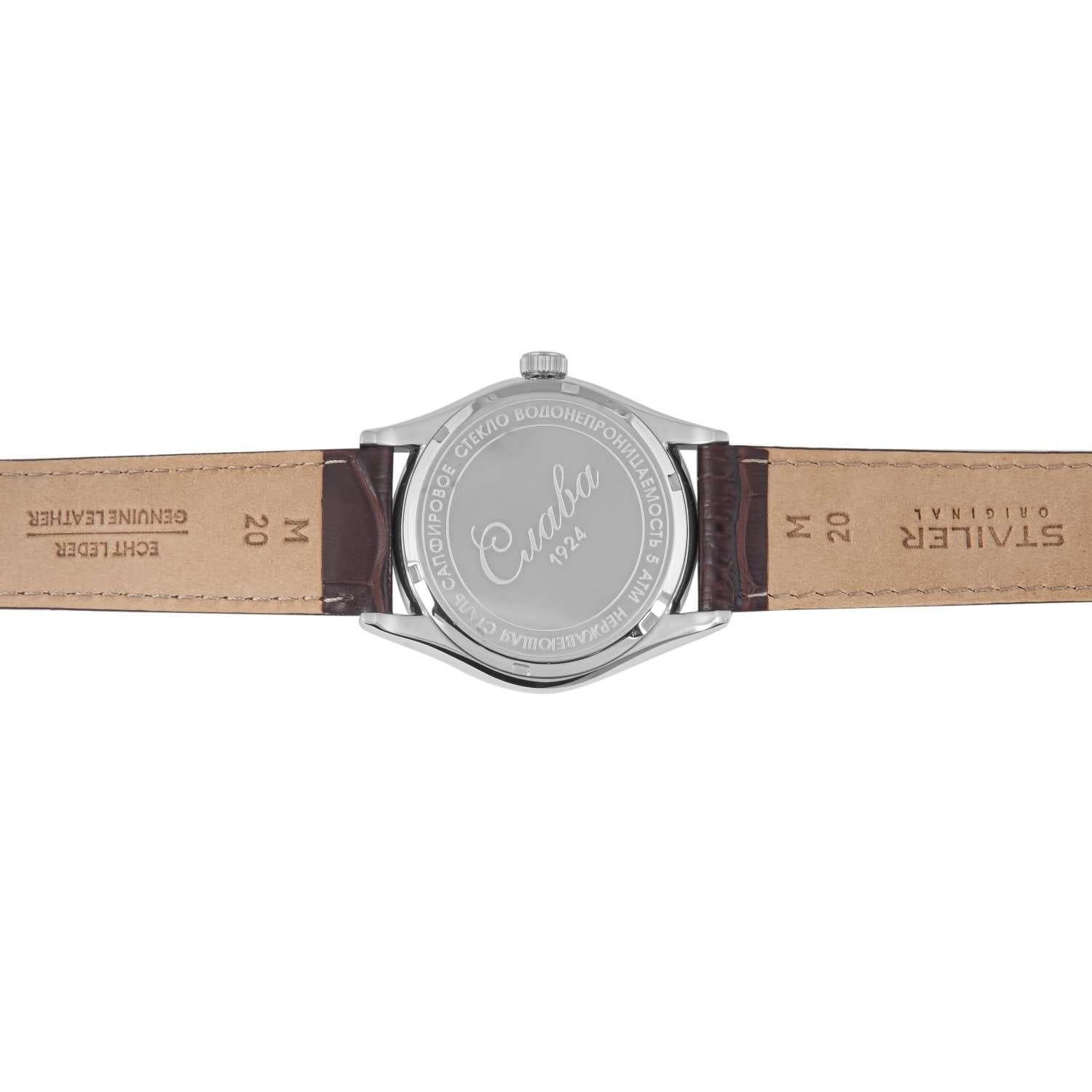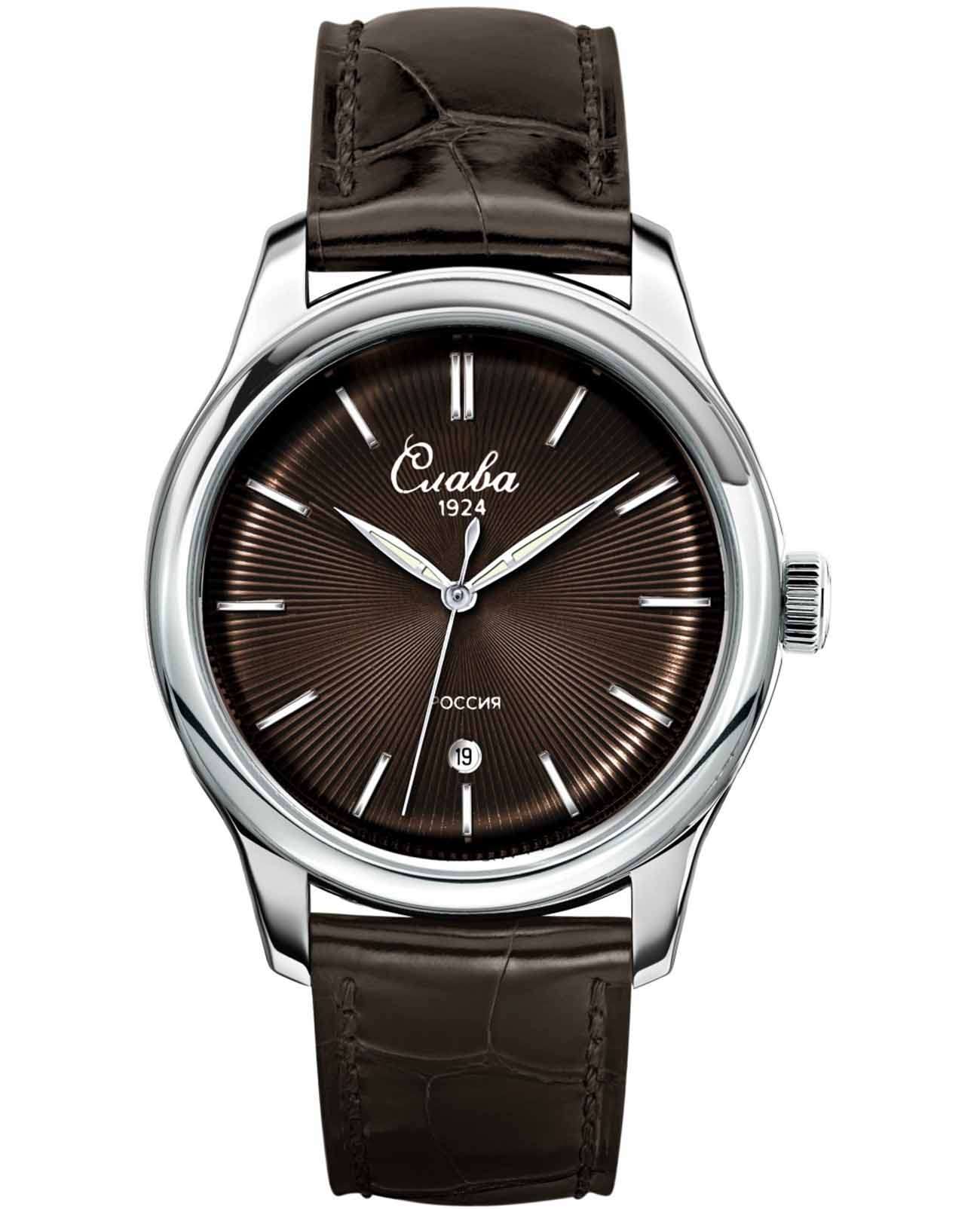 Российские наручные часы Слава Сенат 2490540/300-2115 станут отличным дополнением к вашему образу и идеальным выбором для тех, кто ценит стиль, комфорт и надежность. Эти часы оснащены японским кварцевым механизмом Miyota 2115, что гарантирует их точность и долговечность. Корпус часов диаметром 38 мм и толщиной 11 мм выполнен из прочной стали, а коричневый циферблат с изящными метками защищен сапфировым стекломСапфировое стеклоПрочный и надёжный материал из кристалла сапфира синтетического происхождения, характеризующийся особой твёрдостью и устойчивостью к царапинам и повреждениям., устойчивым к царапинам. Окошко календаря, расположенное в положении 6 часов, добавляет функциональности и удобства в повседневном использовании. Стрелки с люминесцентным покрытиемЛюминесцентное покрытиеПозволяет считывать показания времени в темноте. Производители наносят на стрелки, часовые индексы, безель или поверхность циферблата светонакопительный состав, дающий холодное свечение., что облегчает чтение времени даже в условиях слабого освещения. Эти часы обладают водозащитой 50WR, что позволяет не переживать за их сохранность в условиях повышенной влажности. Завершает образ кожаный ремешок с классической застежкой, обеспечивающий комфортную посадку на запястье.