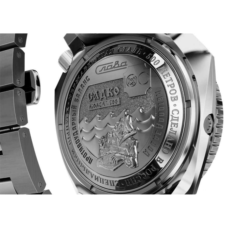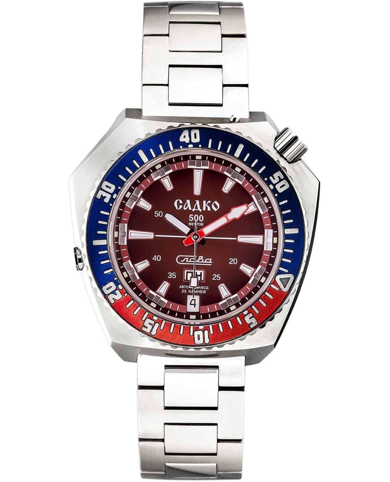 Стильные часы Слава Садко 5007170/100-2427 — станут надежным спутником как в повседневной жизни, так и при покорении морских глубин. Эти часы, созданные в России, оснащены механическим механизмом Слава 2427 с автоподзаводом, который обеспечивает точность и надежность. Корпус выполнен из высококачественной стали 316L. Поворотный безельБезельВнешний ободок, закрепляющий стекло. В спортивных часах так называется поворотное кольцо с делениями на циферблате, выполняет роль таймера – замеряет отрезки времени на шкале. Неподвижный безель – элемент декора. Однонаправленно вращающийся безель на дайверских часах позволяет фиксировать моменты погружения и выныривания на поверхность. часов с IP-покрытиемIP-покрытиеМетод ионного напыления. Демонстрирует повышенную устойчивость к истиранию, окислению и химическим веществам. Под воздействием высокого давления и температуры около 1500°C молекулы металла надёжно соединяются с частицами корпуса часов. красного и синего цвета придаёт модели особую элегантность и долговечность. Яркий красный циферблат с метками в виде штрихов надежно защищён сапфировым стекломСапфировое стеклоПрочный и надёжный материал из кристалла сапфира синтетического происхождения, характеризующийся особой твёрдостью и устойчивостью к царапинам и повреждениям., толщина которого составляет 3 мм. Заводная головка с защитой, расположенная в положении 2 часа, и литой стальной браслет с застежкой «бабочка»Застёжка "бабочка"Такой вид застёжки дополняется предохранителями, помогающими избежать случайного раскрытия браслета. Обладают изящным исполнением. обеспечивают комфорт и удобство в использовании. Эти часы имеют водозащиту 500WR, позволяя погружаться на глубину до 50 атмосфер, что делает их идеальными для дайвинга. Автоматический гелиевый клапан добавляет дополнительную надежность при подводных приключениях. Функциональность часов дополнена календарём с отображением числа и дня недели, который удобно расположен в позиции 6 часов. Кнопка быстрого перевода календаря делает настройку простой и лёгкой. Стрелки и метки обладают люминесцентным покрытиемЛюминесцентное покрытиеПозволяет считывать показания времени в темноте. Производители наносят на стрелки, часовые индексы, безель или поверхность циферблата светонакопительный состав, дающий холодное свечение., которое светится в темноте после зарядки на свету, обеспечивая отличную видимость в любых условиях. Каждый экземпляр из лимитированной серии в 500 штук уникален и имеет номер на задней крышке, украшенной объёмным изображением, выполненным методом чеканки. Механизм часов поддерживает 25 камней и работает с частотой 18000 полуколебаний в час, предлагая запас хода до 40 часов и возможность ручного завода. Противоударное устройство оси баланса добавляет уверенности в их долговечности. Эти часы — идеальный выбор для тех, кто ценит стиль, надежность и функциональность в одном аксессуаре.