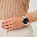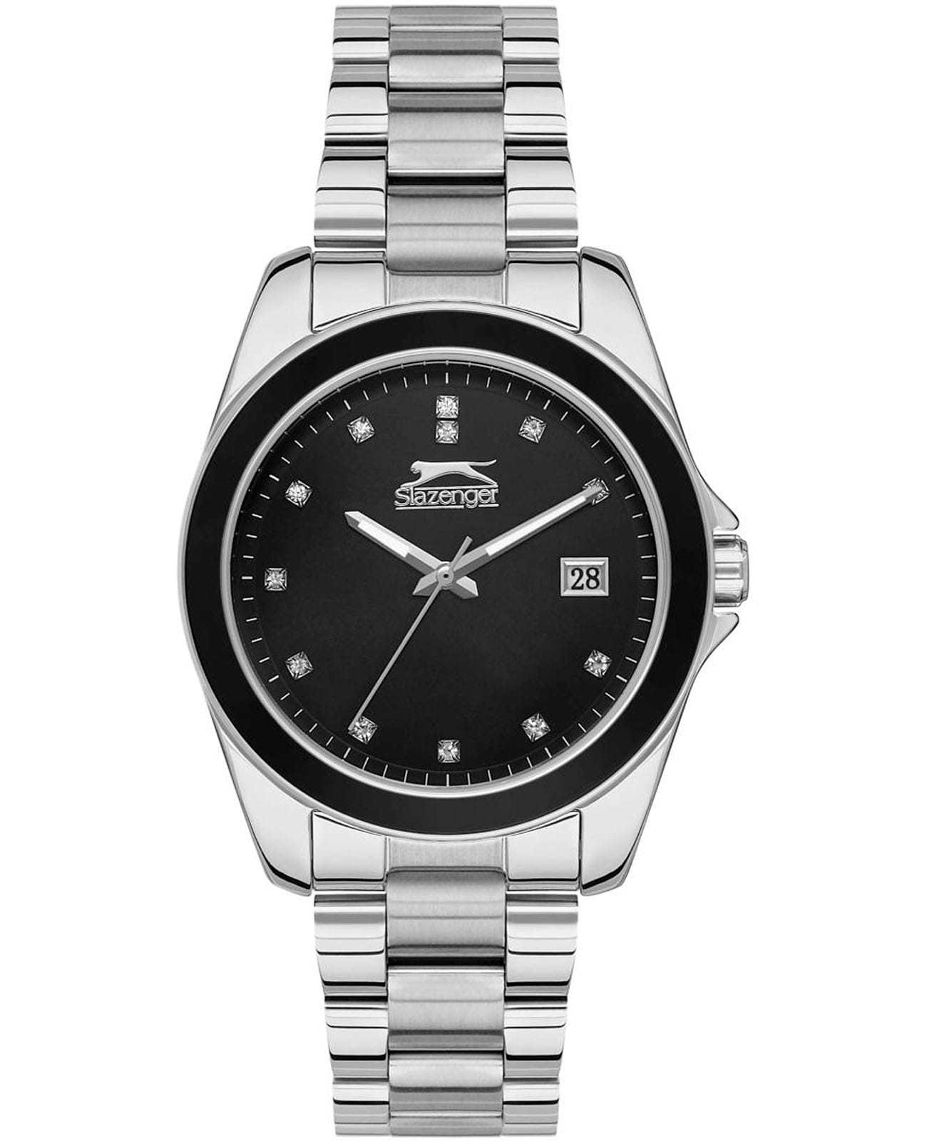 Женские наручные часы Slazenger SL.09.2142.3.01 сочетают в себе элегантный дизайн и надежность современных технологий. Модель обладает круглым корпусом диаметром 37 мм, изготовленным из нержавеющей стали, что обеспечивает высокую устойчивость к внешним воздействиям. Браслет на раскладной застёжкеРаскладная застёжкаТакой тип застёжки используется только на браслетах из металла. Она никогда не раскрывается полностью, происходит разделение на 2 и более частей. Раскладывающая застёжка снизит вероятность потери часов к минимуму., гарантирует комфортное ношение и стильный внешний вид. Циферблат черного цвета декорирован стрелками, которые обеспечивают читаемость времени даже в условиях недостаточной освещенности. Для защиты используется минеральное стеклоМинеральное стеклоМинеральное стекло представляет собой искусственно выращенный минерал кварца. Такое стекло отличается особой устойчивостью к повреждениям и царапинам. Уступает по некоторым качествам сапфировому стеклу., обеспечивающее прочную защиту от царапин. БезельБезельВнешний ободок, закрепляющий стекло. В спортивных часах так называется поворотное кольцо с делениями на циферблате, выполняет роль таймера – замеряет отрезки времени на шкале. Неподвижный безель – элемент декора. Однонаправленно вращающийся безель на дайверских часах позволяет фиксировать моменты погружения и выныривания на поверхность. с IP-покрытиемIP-покрытиеМетод ионного напыления. Демонстрирует повышенную устойчивость к истиранию, окислению и химическим веществам. Под воздействием высокого давления и температуры около 1500°C молекулы металла надёжно соединяются с частицами корпуса часов.. Часы работают на кварцевом механизме, что гарантирует точное время без необходимости подзаводки. Модель также оснащена функцией отображения даты, делая ее практичной для повседневного использования. Водонепроницаемость часов достигает 3 атмосфер, что позволяет использовать их при мытье рук или хождении под мелким дождем, однако не рекомендуется для плавания или других водных видов спорта.
