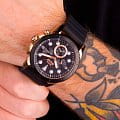 Мужские наручные часы Slazenger SL.09.2012.2.04 сочетают в себе спортивный дизайн и функциональность современных технологий. Модель обладает круглым корпусом диаметром 47 мм, изготовленным из суперметалла с IP-покрытиемIP-покрытиеМетод ионного напыления. Демонстрирует повышенную устойчивость к истиранию, окислению и химическим веществам. Под воздействием высокого давления и температуры около 1500°C молекулы металла надёжно соединяются с частицами корпуса часов., что обеспечивает высокую устойчивость к внешним воздействиям. Браслет выполнен из черного силикона, а застежка стандартная, гарантирующая комфортное ношение и безопасность. Черный циферблат дополнен индексами и тремя малыми циферблатами для отображения даты, дня недели и времени в формате 24 часа, а также защищен прочным минеральным стекломМинеральное стеклоМинеральное стекло представляет собой искусственно выращенный минерал кварца. Такое стекло отличается особой устойчивостью к повреждениям и царапинам. Уступает по некоторым качествам сапфировому стеклу. с люминесцентным покрытиемЛюминесцентное покрытиеПозволяет считывать показания времени в темноте. Производители наносят на стрелки, часовые индексы, безель или поверхность циферблата светонакопительный состав, дающий холодное свечение. для лучшей видимости в темноте. Часы работают на кварцевом механизме, что гарантирует точное время без необходимости подзаводки. БезельБезельВнешний ободок, закрепляющий стекло. В спортивных часах так называется поворотное кольцо с делениями на циферблате, выполняет роль таймера – замеряет отрезки времени на шкале. Неподвижный безель – элемент декора. Однонаправленно вращающийся безель на дайверских часах позволяет фиксировать моменты погружения и выныривания на поверхность. с IP-покрытиемIP-покрытиеМетод ионного напыления. Демонстрирует повышенную устойчивость к истиранию, окислению и химическим веществам. Под воздействием высокого давления и температуры около 1500°C молекулы металла надёжно соединяются с частицами корпуса часов.. Водонепроницаемость часов достигает уровня 5 атмосфер (WR50), что позволяет использовать их во время плавания, однако не рекомендуется для глубоководного дайвинга.