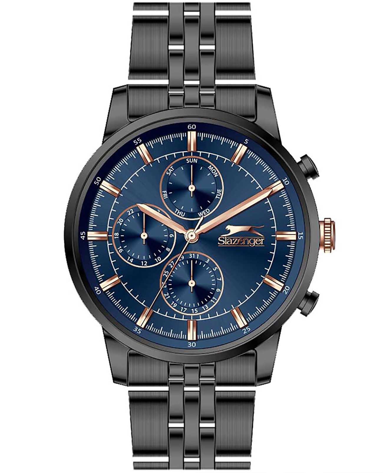 Slazenger SL.09.2036.2.01 — стильные мужские часы, сочетающие элегантный дизайн и функциональность. Корпус выполнен из суперметалла с PVD-покрытиемPVDУльтратонкое покрытие наносится в технике вакуумного напыления, сочетает в себе нитрид титана особой прочности со слоем золота или оксида хрома. Несёт в себе декоративную или защитную функцию., придающей модели прочность и долговечность. Минеральное стеклоМинеральное стеклоМинеральное стекло представляет собой искусственно выращенный минерал кварца. Такое стекло отличается особой устойчивостью к повреждениям и царапинам. Уступает по некоторым качествам сапфировому стеклу. защищает циферблат от царапин и гарантирует превосходную читаемость. Циферблат с дополнительными индикаторами подчёркивает современный стиль. Браслет из суперметалла с PVD-покрытиемPVDУльтратонкое покрытие наносится в технике вакуумного напыления, сочетает в себе нитрид титана особой прочности со слоем золота или оксида хрома. Несёт в себе декоративную или защитную функцию. обеспечивает комфортное ношение и надёжную фиксацию на запястье. Функциональность дополняется индикацией даты, дня недели и 24-часовым форматом времени, повышая удобство использования. Водонепроницаемость 50 метров делает модель устойчивой к случайным брызгам и влаге, идеально подходя для повседневного ношения.