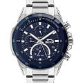 Мужские наручные часы Slazenger SL.09.2056.2.02 сочетают в себе классический дизайн и надежность современных технологий. Модель обладает круглым корпусом диаметром 48 мм, изготовленным из металлического сплава, что обеспечивает высокую устойчивость к внешним воздействиям. БезельБезельВнешний ободок, закрепляющий стекло. В спортивных часах так называется поворотное кольцо с делениями на циферблате, выполняет роль таймера – замеряет отрезки времени на шкале. Неподвижный безель – элемент декора. Однонаправленно вращающийся безель на дайверских часах позволяет фиксировать моменты погружения и выныривания на поверхность. с IP-покрытиемIP-покрытиеМетод ионного напыления. Демонстрирует повышенную устойчивость к истиранию, окислению и химическим веществам. Под воздействием высокого давления и температуры около 1500°C молекулы металла надёжно соединяются с частицами корпуса часов.. Браслет выполнен из стали с раскладной застежкой, гарантирующей комфортное ношение и безопасность. Циферблат декорирован стрелками с люминесцентным покрытиемЛюминесцентное покрытиеПозволяет считывать показания времени в темноте. Производители наносят на стрелки, часовые индексы, безель или поверхность циферблата светонакопительный состав, дающий холодное свечение., которые обеспечивают читаемость времени даже в условиях недостаточной освещенности. Для защиты используется минеральное стеклоМинеральное стеклоМинеральное стекло представляет собой искусственно выращенный минерал кварца. Такое стекло отличается особой устойчивостью к повреждениям и царапинам. Уступает по некоторым качествам сапфировому стеклу., обеспечивающее прочную защиту от царапин. Часы работают на кварцевом механизме, что гарантирует точное время без необходимости подзаводки. Модель также оснащена функцией отображения даты, дня недели, а также второго часового пояса, делая ее практичной для повседневного использования и путешествий.