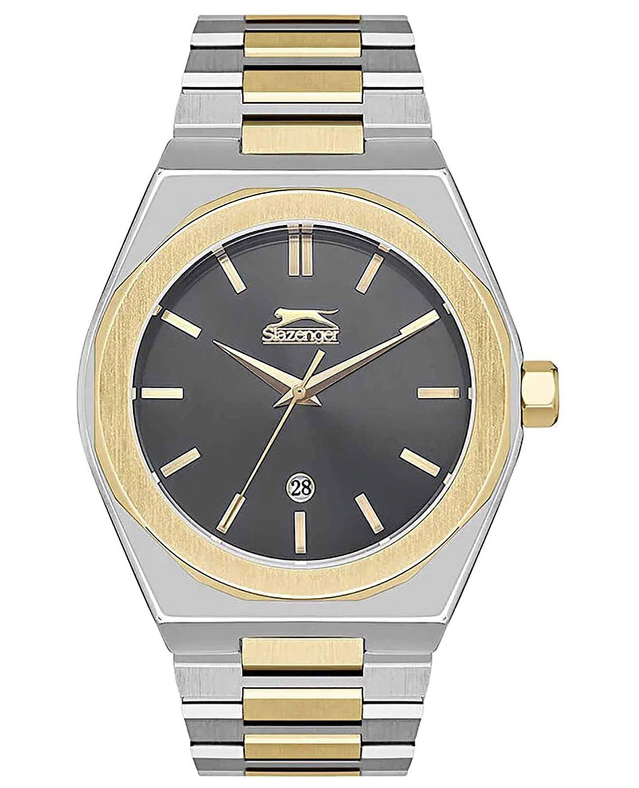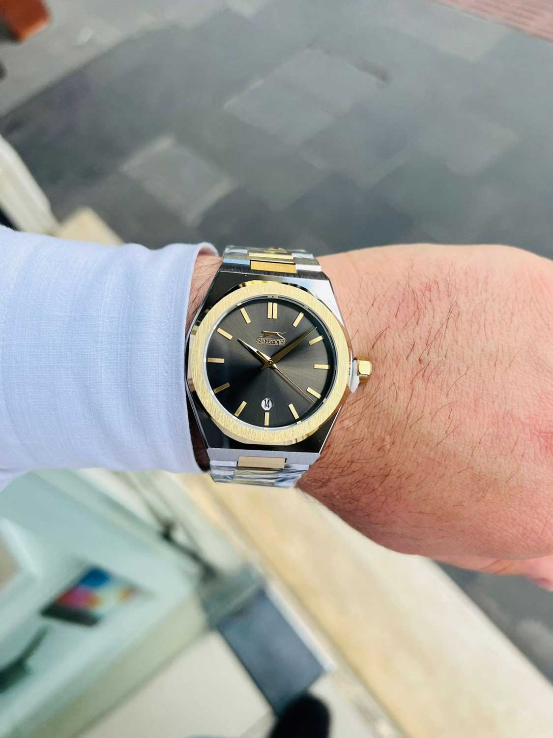 Мужские наручные часы Slazenger SL.09.2144.1.03 сочетают в себе классический дизайн и надежность современных технологий. Модель обладает круглым корпусом диаметром 44 мм, изготовленным из суперметалла, что обеспечивает высокую устойчивость к внешним воздействиям. Браслет выполнен из суперметалла с IP-покрытиемIP-покрытиеМетод ионного напыления. Демонстрирует повышенную устойчивость к истиранию, окислению и химическим веществам. Под воздействием высокого давления и температуры около 1500°C молекулы металла надёжно соединяются с частицами корпуса часов. и раскладной застежкойРаскладной замокДанный вариант застежки используется только на часах с металлическим браслетом. Отличительная особенность такого крепления в том, что длина браслета становится универсальной и вы можете самостоятельно отрегулировать нужный вам размер – застежка просто двигается по браслету часов., гарантирующей комфортное ношение и безопасность. Для защиты корпуса используется минеральное стеклоМинеральное стеклоМинеральное стекло представляет собой искусственно выращенный минерал кварца. Такое стекло отличается особой устойчивостью к повреждениям и царапинам. Уступает по некоторым качествам сапфировому стеклу., обеспечивающее прочную защиту от царапин. Часы работают на кварцевом механизме, что гарантирует точное время без необходимости подзаводки. Водонепроницаемость часов достигает 5 атмосфер (WR50), что позволяет использовать их во время плавания, однако они не предназначены для дайвинга или других водных видов спорта. Толщина модели составляет 11 мм. SL.09.2144.1.03 — это стильный аксессуар, который станет отличным дополнением как формального, так и casual образа мужчины.