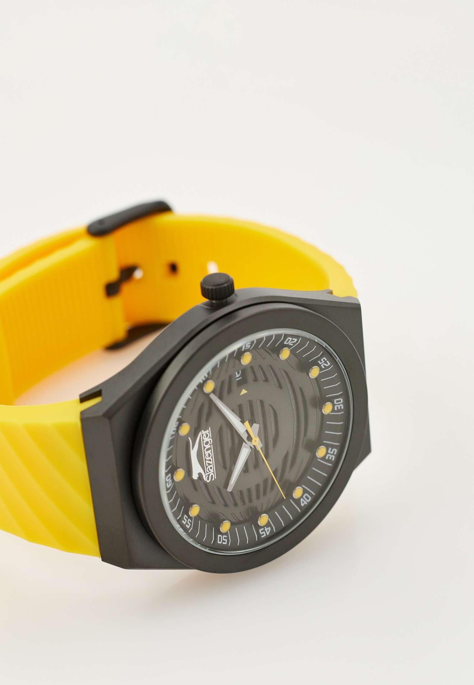 Стильные наручные часы Slazenger SL.09.2221.1.05 сочетают современный дизайн и надежность, идеально подходя для активного образа жизни. Корпус диаметром 44 мм изготовлен из прочного металла и дополнен устойчивым к царапинам минеральным стекломМинеральное стеклоМинеральное стекло представляет собой искусственно выращенный минерал кварца. Такое стекло отличается особой устойчивостью к повреждениям и царапинам. Уступает по некоторым качествам сапфировому стеклу.. Жельый ремешок из мягкого силикона удобно сидит на запястье и фиксируется классической застежкой. Кварцевый механизм обеспечивает точность хода, а водозащита уровня WR 50 позволяет не беспокоиться о воздействии влаги в повседневных ситуациях. Модель оснащена функцией отображения даты в отдельном окошке. Стрелки снабжены люминесцентным покрытиемЛюминесцентное покрытиеПозволяет считывать показания времени в темноте. Производители наносят на стрелки, часовые индексы, безель или поверхность циферблата светонакопительный состав, дающий холодное свечение., что позволяет легко считывать время в темноте. Часы весят всего 82 грамма, что делает их легкими и комфортными для ежедневного ношения Эти часы станут отличным выбором для тех, кто ценит качество, практичность и современный стиль.