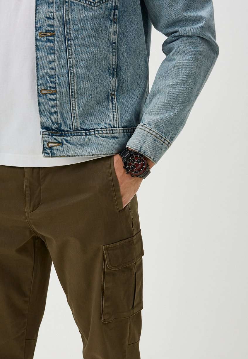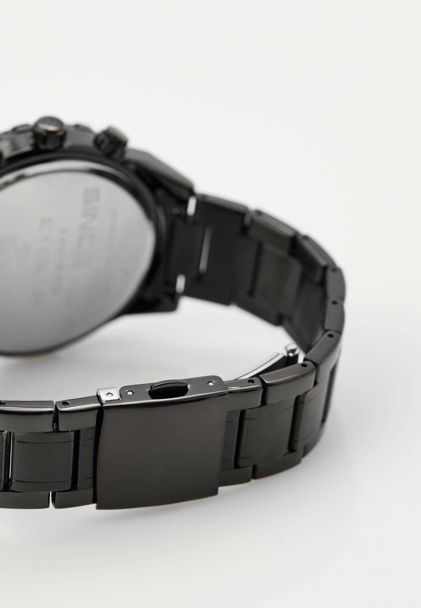 Часы Slazenger SL.09.2236.2.04 — это стильная и надежная модель, которая станет отличным выбором для активного современного мужчины. Крупный корпус диаметром 46 мм и браслет с раскладной застёжкойРаскладная застёжкаТакой тип застёжки используется только на браслетах из металла. Она никогда не раскрывается полностью, происходит разделение на 2 и более частей. Раскладывающая застёжка снизит вероятность потери часов к минимуму. с черным IP-покрытиемIP-покрытиеМетод ионного напыления. Демонстрирует повышенную устойчивость к истиранию, окислению и химическим веществам. Под воздействием высокого давления и температуры около 1500°C молекулы металла надёжно соединяются с частицами корпуса часов. выполнены из прочного металла, что обеспечивает комфорт и долговечность. На безельБезельВнешний ободок, закрепляющий стекло. В спортивных часах так называется поворотное кольцо с делениями на циферблате, выполняет роль таймера – замеряет отрезки времени на шкале. Неподвижный безель – элемент декора. Однонаправленно вращающийся безель на дайверских часах позволяет фиксировать моменты погружения и выныривания на поверхность. нанесено черное и красное IP-покрытиеIP-покрытиеМетод ионного напыления. Демонстрирует повышенную устойчивость к истиранию, окислению и химическим веществам. Под воздействием высокого давления и температуры около 1500°C молекулы металла надёжно соединяются с частицами корпуса часов.. Минеральное стеклоМинеральное стеклоМинеральное стекло представляет собой искусственно выращенный минерал кварца. Такое стекло отличается особой устойчивостью к повреждениям и царапинам. Уступает по некоторым качествам сапфировому стеклу. защищает текстурированный черно-красный циферблат с градиентом от случайных царапин, а водозащита уровня WR 50 позволяет не переживать о попадании влаги при контакте с водой. На циферблате расположены дополнительные малые циферблаты с отображением даты, дня недели и времени в 24-часовом формате, что делает использование часов максимально функциональным. Для удобства использования в темное время суток предусмотрено люминесцентное покрытиеЛюминесцентное покрытиеПозволяет считывать показания времени в темноте. Производители наносят на стрелки, часовые индексы, безель или поверхность циферблата светонакопительный состав, дающий холодное свечение. стрелок. Толщина корпуса составляет 13 мм, вес часов — 152 грамма.