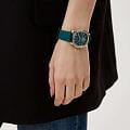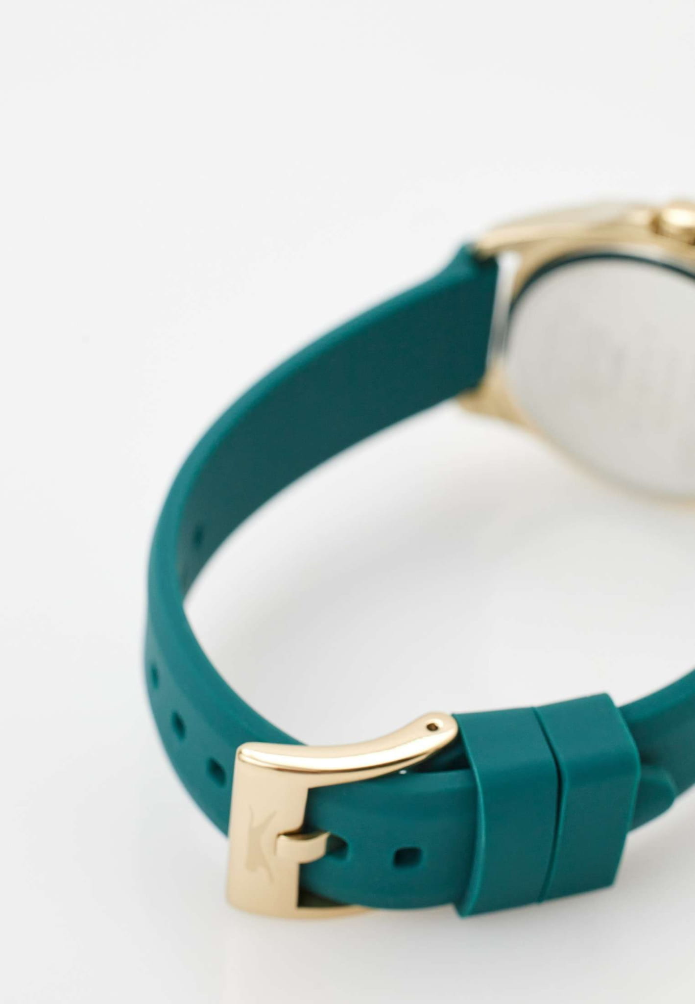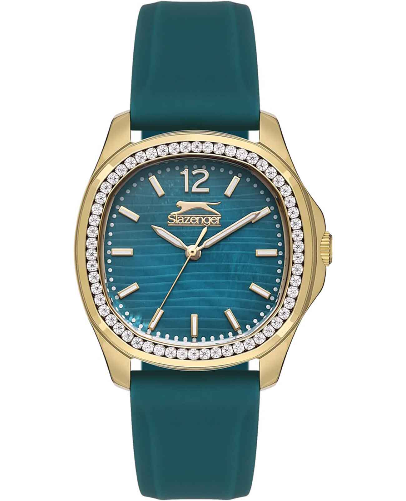 Часы Slazenger SL.09.2239.3.04 – это изысканный аксессуар, который станет стильным акцентом любого образа. Модель оснащена надежным кварцевым механизмом. Корпус из прочного металла с золотистым IP-покрытиемIP-покрытиеМетод ионного напыления. Демонстрирует повышенную устойчивость к истиранию, окислению и химическим веществам. Под воздействием высокого давления и температуры около 1500°C молекулы металла надёжно соединяются с частицами корпуса часов. размером 34х34 мм украшен россыпью сверкающих фианитов по безелюБезельВнешний ободок, закрепляющий стекло. В спортивных часах так называется поворотное кольцо с делениями на циферблате, выполняет роль таймера – замеряет отрезки времени на шкале. Неподвижный безель – элемент декора. Однонаправленно вращающийся безель на дайверских часах позволяет фиксировать моменты погружения и выныривания на поверхность., что придает часам особое сияние и элегантность. Сине-зеленый циферблат с логотипом бренда защищен стойким к царапинам минеральным стекломМинеральное стеклоМинеральное стекло представляет собой искусственно выращенный минерал кварца. Такое стекло отличается особой устойчивостью к повреждениям и царапинам. Уступает по некоторым качествам сапфировому стеклу.. Четкие часовые метки в виде лаконичных штрихов и крупная арабская цифра 12 обеспечивают удобство чтения времени. Заводная головка с рифлением дополнена защитой для повышения долговечности. Резиновый сине-зеленый ремешок шириной 18 мм надежно фиксируется на запястье с помощью классической застежки. Для удобства использования в темное время суток предусмотрено люминесцентное покрытиеЛюминесцентное покрытиеПозволяет считывать показания времени в темноте. Производители наносят на стрелки, часовые индексы, безель или поверхность циферблата светонакопительный состав, дающий холодное свечение. стрелок. Водозащита 30WR позволяет не беспокоиться о случайных брызгах. Вес изделия составляет 43 грамма, что делает часы комфортными для ежедневного ношения. Эти часы идеально подойдут для тех, кто ценит гармонию стиля, качества и функциональности.