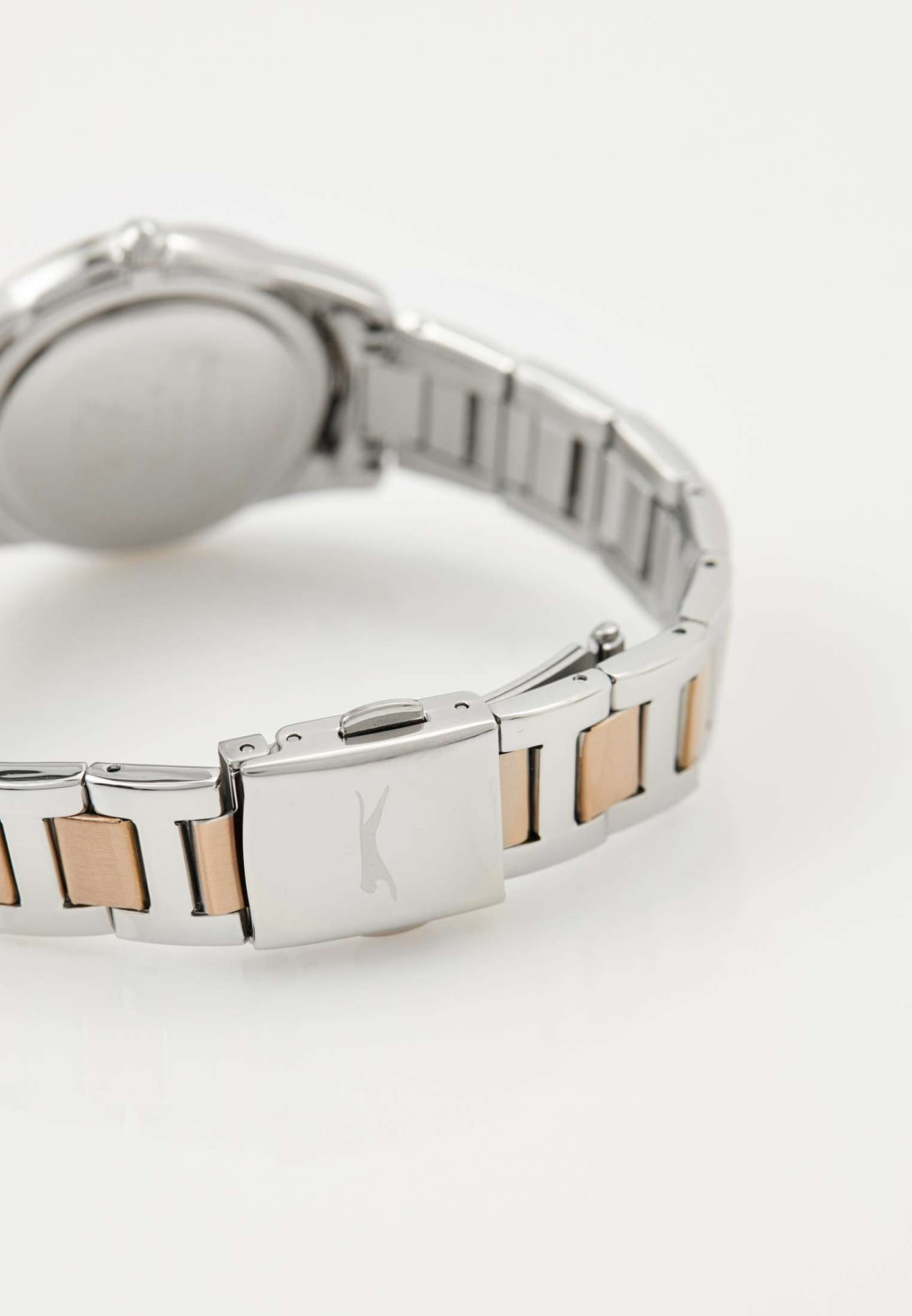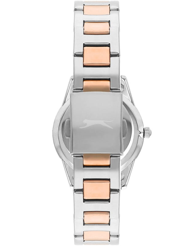 Часы Slazenger SL.09.2253.3.03 — это стильная и элегантная модель, созданная для тех, кто ценит утонченность и надежность. Корпус выполнен из прочного металла, а изящный серебристый браслет с частичным розово-золотистым IP-покрытиемIP-покрытиеМетод ионного напыления. Демонстрирует повышенную устойчивость к истиранию, окислению и химическим веществам. Под воздействием высокого давления и температуры около 1500°C молекулы металла надёжно соединяются с частицами корпуса часов. оснащён удобной раскладной застёжкойРаскладная застёжкаТакой тип застёжки используется только на браслетах из металла. Она никогда не раскрывается полностью, происходит разделение на 2 и более частей. Раскладывающая застёжка снизит вероятность потери часов к минимуму.. На безельБезельВнешний ободок, закрепляющий стекло. В спортивных часах так называется поворотное кольцо с делениями на циферблате, выполняет роль таймера – замеряет отрезки времени на шкале. Неподвижный безель – элемент декора. Однонаправленно вращающийся безель на дайверских часах позволяет фиксировать моменты погружения и выныривания на поверхность. нанесено розово-золотистое IP-покрытиеIP-покрытиеМетод ионного напыления. Демонстрирует повышенную устойчивость к истиранию, окислению и химическим веществам. Под воздействием высокого давления и температуры около 1500°C молекулы металла надёжно соединяются с частицами корпуса часов.. Минеральное стеклоМинеральное стеклоМинеральное стекло представляет собой искусственно выращенный минерал кварца. Такое стекло отличается особой устойчивостью к повреждениям и царапинам. Уступает по некоторым качествам сапфировому стеклу. защищает серебристый циферблат, украшенный сияющими кристаллами, придающими аксессуару особый шарм. Кварцевый механизм обеспечивает точность хода, а водозащита класса WR 30 позволяет не беспокоиться о случайных брызгах. Диаметр корпуса составляет 33 мм, ширина браслета — 16 мм, толщина корпуса — 8 мм, что делает эти часы аккуратными и комфортными для повседневной носки. Модель весит 70 грамм. Часы прекрасно дополнят как деловой, так и повседневный образ, подчеркивая индивидуальность своей обладательницы.