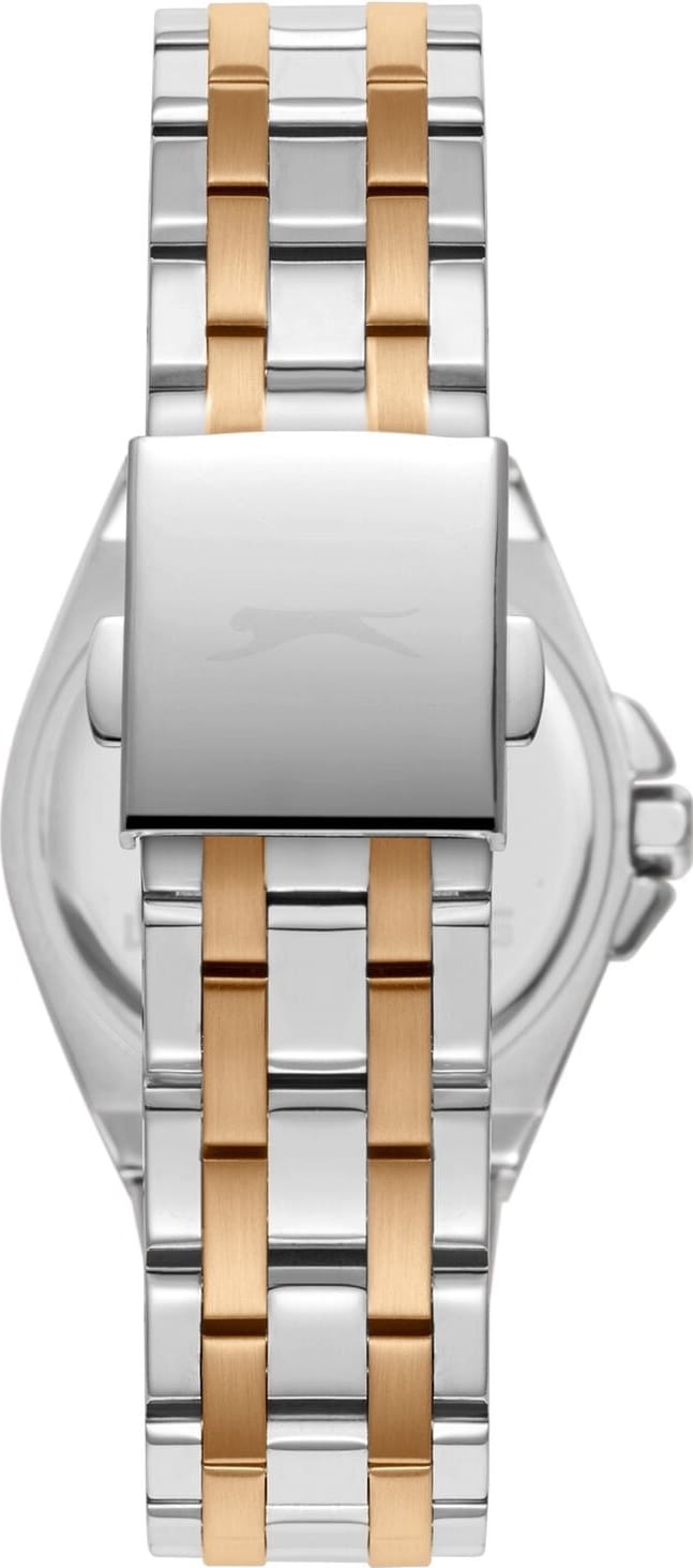Женские часы Slazenger SL.09.2342.3.05 – это сочетание элегантности, современного стиля и надёжности. Изящный корпус из суперметалла подчёркивает утончённость модели, а благородное цветовое исполнение делает их идеальным аксессуаром для любой ситуации – будь то деловая встреча, романтический вечер или повседневные выходы. Циферблат украшен кристаллами. Циферблат надёжно защищён минеральным стекломМинеральное стеклоМинеральное стекло представляет собой искусственно выращенный минерал кварца. Такое стекло отличается особой устойчивостью к повреждениям и царапинам. Уступает по некоторым качествам сапфировому стеклу., которое устойчиво к механическим повреждениям и сохраняет кристальную прозрачность. Стрелки с люминесцентным покрытиемЛюминесцентное покрытиеПозволяет считывать показания времени в темноте. Производители наносят на стрелки, часовые индексы, безель или поверхность циферблата светонакопительный состав, дающий холодное свечение. мягко подсвечиваются в темноте, обеспечивая комфортное считывание времени в любое время суток. Эргономичный браслет из суперметалла с PVD-покрытияPVDУльтратонкое покрытие наносится в технике вакуумного напыления, сочетает в себе нитрид титана особой прочности со слоем золота или оксида хрома. Несёт в себе декоративную или защитную функцию. удобно облегает запястье и фиксируется с помощью раскладной застёжкиРаскладная застёжкаТакой тип застёжки используется только на браслетах из металла. Она никогда не раскрывается полностью, происходит разделение на 2 и более частей. Раскладывающая застёжка снизит вероятность потери часов к минимуму., обеспечивая надёжность и комфорт в повседневном ношении. Утончённый стиль, внимание к деталям и практичность делают эту модель идеальным выбором для современных женщин, ценящих эстетику и функциональность.