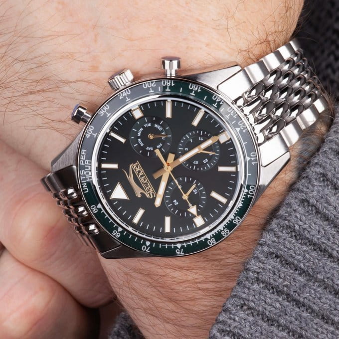 Мужские кварцевые часы Slazenger SL.09.2360.2.04 – идеальное сочетание классического дизайна и современных технологий, созданное для уверенных в себе мужчин. Корпус выполнен из суперметалла серебристого цвета, диаметром 43 мм и толщиной 12 мм, подчёркивает надежность модели и делает их идеальным аксессуаром для любой ситуации – будь то деловая встреча или повседневные выходы. Циферблат надёжно защищён минеральным стекломМинеральное стеклоМинеральное стекло представляет собой искусственно выращенный минерал кварца. Такое стекло отличается особой устойчивостью к повреждениям и царапинам. Уступает по некоторым качествам сапфировому стеклу., которое устойчиво к механическим повреждениям и сохраняет кристальную прозрачность. Неподвижный безельБезельВнешний ободок, закрепляющий стекло. В спортивных часах так называется поворотное кольцо с делениями на циферблате, выполняет роль таймера – замеряет отрезки времени на шкале. Неподвижный безель – элемент декора. Однонаправленно вращающийся безель на дайверских часах позволяет фиксировать моменты погружения и выныривания на поверхность. с IP-покрытиемIP-покрытиеМетод ионного напыления. Демонстрирует повышенную устойчивость к истиранию, окислению и химическим веществам. Под воздействием высокого давления и температуры около 1500°C молекулы металла надёжно соединяются с частицами корпуса часов. зеленого цвета. Стальной браслет на раскладной застёжкеРаскладная застёжкаТакой тип застёжки используется только на браслетах из металла. Она никогда не раскрывается полностью, происходит разделение на 2 и более частей. Раскладывающая застёжка снизит вероятность потери часов к минимуму. удобно облегает запястье, обеспечивая надёжность и комфорт в повседневном ношении. Стрелки и метки покрыты люминесцентным покрытиемЛюминесцентное покрытиеПозволяет считывать показания времени в темноте. Производители наносят на стрелки, часовые индексы, безель или поверхность циферблата светонакопительный состав, дающий холодное свечение., обеспечивающим отличную читаемость в темноте. Эти часы станут не просто аксессуаром, а надежным спутником в любой ситуации, подчеркивая ваш безупречный вкус и деловой стиль. Вынесенный циферблат с 24-х часовым указателем времени и функция тахиметраТахиметрРазмеченная шкала, располагается на ободке или безеле часов. Тахиметр позволяет рассчитать скорость на определённом участке пути, расстояние измеряется в километрах или милях.. Водозащита 50 метров позволит защитить корпус от случайных брызг или капель дождя.