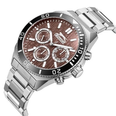 Мужские кварцевые часы Slazenger SL.09.2370.2.06 – идеальное сочетание классического дизайна и современных технологий, созданное для уверенных в себе мужчин. Корпус выполнен из суперметалла серебристого цвета, диаметром 44.5 мм и толщиной 13 мм, подчёркивает надежность модели и делает их идеальным аксессуаром для любой ситуации – будь то деловая встреча или повседневные выходы. Циферблат надёжно защищён минеральным стекломМинеральное стеклоМинеральное стекло представляет собой искусственно выращенный минерал кварца. Такое стекло отличается особой устойчивостью к повреждениям и царапинам. Уступает по некоторым качествам сапфировому стеклу., которое устойчиво к механическим повреждениям и сохраняет кристальную прозрачность. БезельБезельВнешний ободок, закрепляющий стекло. В спортивных часах так называется поворотное кольцо с делениями на циферблате, выполняет роль таймера – замеряет отрезки времени на шкале. Неподвижный безель – элемент декора. Однонаправленно вращающийся безель на дайверских часах позволяет фиксировать моменты погружения и выныривания на поверхность. с IP-покрытиемIP-покрытиеМетод ионного напыления. Демонстрирует повышенную устойчивость к истиранию, окислению и химическим веществам. Под воздействием высокого давления и температуры около 1500°C молекулы металла надёжно соединяются с частицами корпуса часов. черного цвета. Стальной браслет удобно облегает запястье и фиксируется с помощью раскладной застёжкиРаскладная застёжкаТакой тип застёжки используется только на браслетах из металла. Она никогда не раскрывается полностью, происходит разделение на 2 и более частей. Раскладывающая застёжка снизит вероятность потери часов к минимуму., обеспечивая надёжность и комфорт в повседневном ношении. Стрелки и метки покрыты люминесцентным покрытиемЛюминесцентное покрытиеПозволяет считывать показания времени в темноте. Производители наносят на стрелки, часовые индексы, безель или поверхность циферблата светонакопительный состав, дающий холодное свечение., обеспечивающим отличную читаемость в темноте. Эти часы станут не просто аксессуаром, а надежным спутником в любой ситуации, подчеркивая ваш безупречный вкус и деловой стиль. Вынесенный циферблат с 24-х часовым указателем времени. Водозащита 50 метров позволит защитить корпус от случайных брызг или капель дождя.