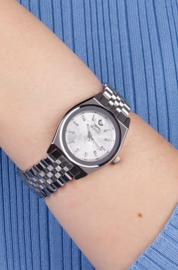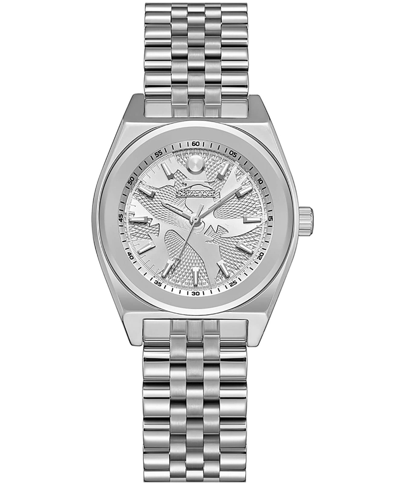 Женские кварцевые часы Slazenger SL.09.2376.3.01 – это сочетание элегантности, современного стиля и надёжности. Изящный корпус из суперметалла серебристого цвета, диаметром 32 мм и толщиной 9 мм, подчёркивает утончённость модели и делает их идеальным аксессуаром для любой ситуации – будь то деловая встреча, романтический вечер или повседневные выходы. Циферблат надёжно защищён минеральным стекломМинеральное стеклоМинеральное стекло представляет собой искусственно выращенный минерал кварца. Такое стекло отличается особой устойчивостью к повреждениям и царапинам. Уступает по некоторым качествам сапфировому стеклу., которое устойчиво к механическим повреждениям и сохраняет кристальную прозрачность. Браслет из суперметалла удобно облегает запястье и фиксируется с помощью раскладной застёжкиРаскладная застёжкаТакой тип застёжки используется только на браслетах из металла. Она никогда не раскрывается полностью, происходит разделение на 2 и более частей. Раскладывающая застёжка снизит вероятность потери часов к минимуму., обеспечивая надёжность и комфорт в повседневном ношении. Утончённый стиль, внимание к деталям и практичность делают эту модель идеальным выбором для современных женщин, ценящих эстетику и функциональность. Метки покрыты люминесцентным покрытиемЛюминесцентное покрытиеПозволяет считывать показания времени в темноте. Производители наносят на стрелки, часовые индексы, безель или поверхность циферблата светонакопительный состав, дающий холодное свечение., обеспечивающим отличную читаемость в темноте. Водозащита до 30 метров позволит защитить корпус от случайных брызг или капель дождя.