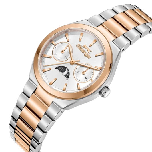 Женские кварцевые часы Slazenger — это выразительный и функциональный аксессуар. Корпус диаметром 34 мм и толщиной 9,5 мм выполнен из суперметалла. БезельБезельВнешний ободок, закрепляющий стекло. В спортивных часах так называется поворотное кольцо с делениями на циферблате, выполняет роль таймера – замеряет отрезки времени на шкале. Неподвижный безель – элемент декора. Однонаправленно вращающийся безель на дайверских часах позволяет фиксировать моменты погружения и выныривания на поверхность. из суперметалла с IP-покрытиемIP-покрытиеМетод ионного напыления. Демонстрирует повышенную устойчивость к истиранию, окислению и химическим веществам. Под воздействием высокого давления и температуры около 1500°C молекулы металла надёжно соединяются с частицами корпуса часов.. Циферблат серебристого цвета оформлен индексами и стрелками. Циферблат защищён минеральным стекломМинеральное стеклоМинеральное стекло представляет собой искусственно выращенный минерал кварца. Такое стекло отличается особой устойчивостью к повреждениям и царапинам. Уступает по некоторым качествам сапфировому стеклу.. Механизм — кварцевый калибр VX3HE11. Часы оснащены индикацией дня недели, даты и индикатором день/ночь, отображающим солнце или луну в зависимости от времени суток. Часы оснащены браслетом из суперметалла с IP-покрытиемIP-покрытиеМетод ионного напыления. Демонстрирует повышенную устойчивость к истиранию, окислению и химическим веществам. Под воздействием высокого давления и температуры около 1500°C молекулы металла надёжно соединяются с частицами корпуса часов. и раскладной застёжкойРаскладная застёжкаТакой тип застёжки используется только на браслетах из металла. Она никогда не раскрывается полностью, происходит разделение на 2 и более частей. Раскладывающая застёжка снизит вероятность потери часов к минимуму.. Водонепроницаемость 50 м позволяет использовать часы в повседневных условиях. Гарантия — 12 месяцев. Идеальный выбор для тех, кто ценит стиль, функциональность и качество.