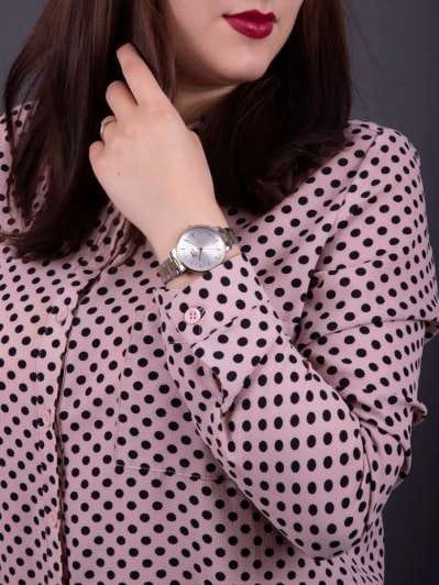 Женские кварцевые часы Slazenger — элегантный аксессуар с гармоничным дизайном и продуманной конструкцией. Корпус диаметром 35 мм и толщиной 8,5 мм выполнен из суперметалла. БезельБезельВнешний ободок, закрепляющий стекло. В спортивных часах так называется поворотное кольцо с делениями на циферблате, выполняет роль таймера – замеряет отрезки времени на шкале. Неподвижный безель – элемент декора. Однонаправленно вращающийся безель на дайверских часах позволяет фиксировать моменты погружения и выныривания на поверхность. с IP-покрытиемIP-покрытиеМетод ионного напыления. Демонстрирует повышенную устойчивость к истиранию, окислению и химическим веществам. Под воздействием высокого давления и температуры около 1500°C молекулы металла надёжно соединяются с частицами корпуса часов.. Циферблат серебристого цвета оформлен индексами и стрелками. Циферблат защищён минеральным стекломМинеральное стеклоМинеральное стекло представляет собой искусственно выращенный минерал кварца. Такое стекло отличается особой устойчивостью к повреждениям и царапинам. Уступает по некоторым качествам сапфировому стеклу.. Механизм — кварцевый калибр Miyota 2035. Браслет из суперметалла с IP-покрытиемIP-покрытиеМетод ионного напыления. Демонстрирует повышенную устойчивость к истиранию, окислению и химическим веществам. Под воздействием высокого давления и температуры около 1500°C молекулы металла надёжно соединяются с частицами корпуса часов.., обеспечивает цельный и утончённый образ. Часы оснащены раскладной застёжкойРаскладная застёжкаТакой тип застёжки используется только на браслетах из металла. Она никогда не раскрывается полностью, происходит разделение на 2 и более частей. Раскладывающая застёжка снизит вероятность потери часов к минимуму.. Водонепроницаемость 30 м позволяет использовать часы в повседневных условиях. Стильное решение для тех, кто ценит лаконичность и качество.