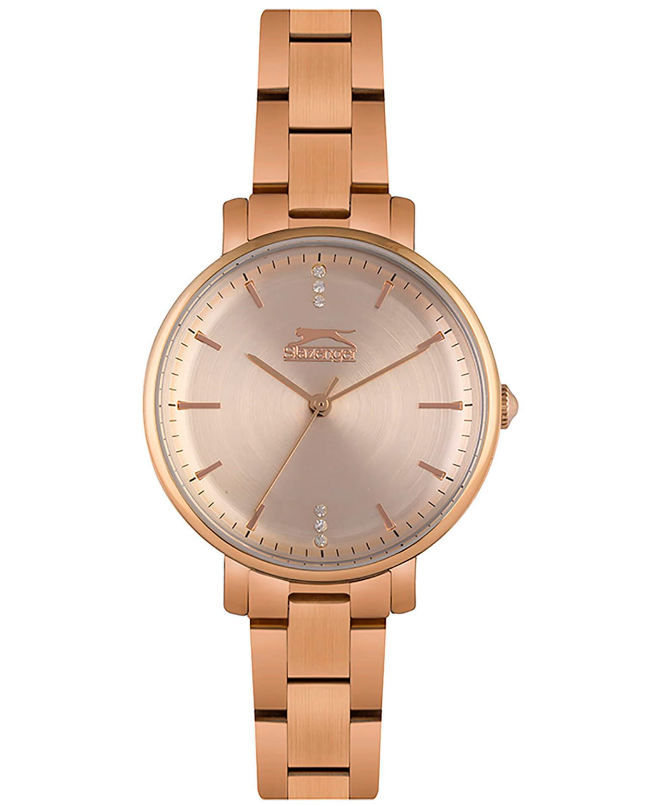 Женские кварцевые часы Slazenger — элегантный аксессуар с гармоничным дизайном и продуманной конструкцией. Корпус диаметром 35 мм и толщиной 8,5 мм выполнен из суперметалла с IP-покрытиемIP-покрытиеМетод ионного напыления. Демонстрирует повышенную устойчивость к истиранию, окислению и химическим веществам. Под воздействием высокого давления и температуры около 1500°C молекулы металла надёжно соединяются с частицами корпуса часов.. Циферблат цвета шампань оформлен индексами и стрелками. Циферблат защищён минеральным стекломМинеральное стеклоМинеральное стекло представляет собой искусственно выращенный минерал кварца. Такое стекло отличается особой устойчивостью к повреждениям и царапинам. Уступает по некоторым качествам сапфировому стеклу.. Механизм — кварцевый калибр Miyota 2035. Браслет интегрирован в корпус, обеспечивая цельный и утончённый образ. Часы оснащены раскладной застёжкойРаскладная застёжкаТакой тип застёжки используется только на браслетах из металла. Она никогда не раскрывается полностью, происходит разделение на 2 и более частей. Раскладывающая застёжка снизит вероятность потери часов к минимуму.. Водонепроницаемость 30 м позволяет использовать часы в повседневных условиях. Стильное решение для тех, кто ценит лаконичность и качество.
