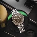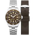 Мужские итальянские часы Spinnaker Spence SP-5097-33, механический механизм (автоматический калибр) с высокой точностью. Циферблат с люминесцентным покрытиемЛюминесцентное покрытиеПозволяет считывать показания времени в темноте. Производители наносят на стрелки, часовые индексы, безель или поверхность циферблата светонакопительный состав, дающий холодное свечение. стрелок и меток, дополнен сапфировым стекломСапфировое стеклоПрочный и надёжный материал из кристалла сапфира синтетического происхождения, характеризующийся особой твёрдостью и устойчивостью к царапинам и повреждениям., устойчивым к появлению царапин и обладающее высокой прозрачностью. Вращающийся безельБезельВнешний ободок, закрепляющий стекло. В спортивных часах так называется поворотное кольцо с делениями на циферблате, выполняет роль таймера – замеряет отрезки времени на шкале. Неподвижный безель – элемент декора. Однонаправленно вращающийся безель на дайверских часах позволяет фиксировать моменты погружения и выныривания на поверхность. с PVD-покрытиемPVDУльтратонкое покрытие наносится в технике вакуумного напыления, сочетает в себе нитрид титана особой прочности со слоем золота или оксида хрома. Несёт в себе декоративную или защитную функцию.. Класс водозащиты: 300 метров, позволит плавать, нырять и заниматься другими водными видами спорта. Корпус часов изготовлен из стали. Браслет с раскладной застёжкойРаскладная застёжкаТакой тип застёжки используется только на браслетах из металла. Она никогда не раскрывается полностью, происходит разделение на 2 и более частей. Раскладывающая застёжка снизит вероятность потери часов к минимуму.. Сменный ремешок в комплекте.